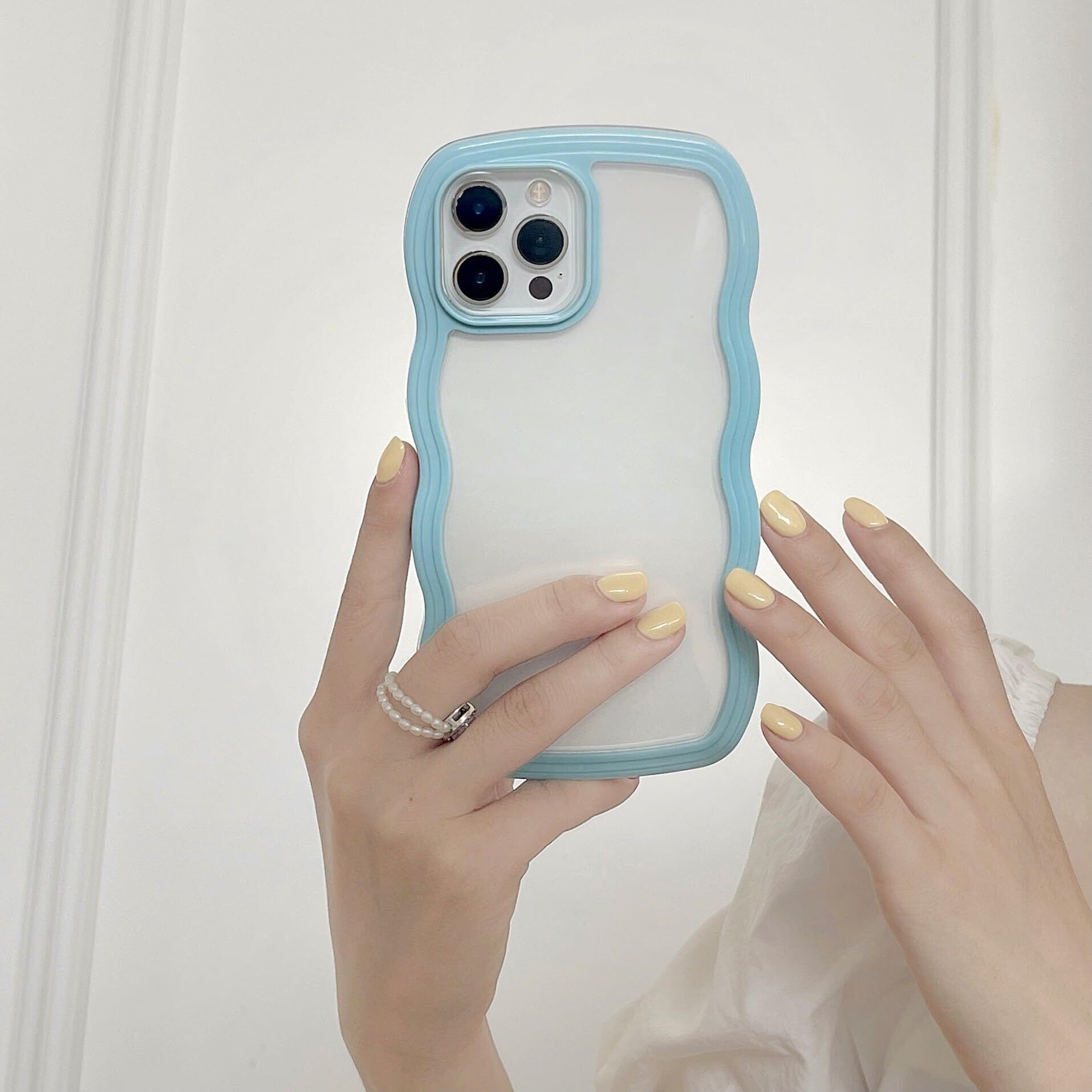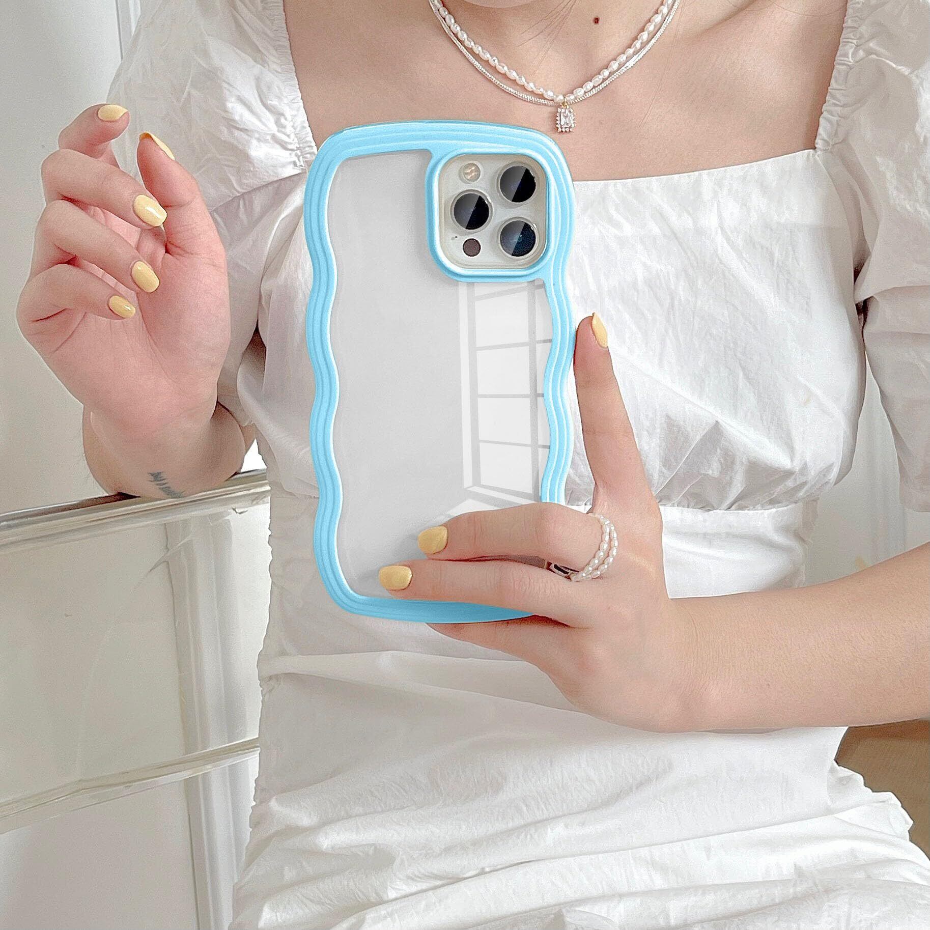 【精密なカットアウト】 UEEBAIソリッドカラーススマホケース、クリア可愛いウェーブシェイプスマホケース完全に精密なカットアウトである。正確なカットアウトと反応するプレスボタンは、すべてのポート(カメラ、スピーカー、マイクなど)にアクセスするためにスマホカバーを簡単にします。