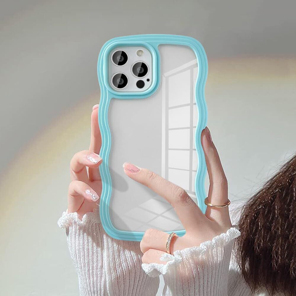UEEBAI 対応 iPhone 12/iPhone 12 Pro 6.1 inch 用の ケース ソフト TPU カバー 可愛い おしゃれケース 透明 ウェーブ デザイン スマホケース ワイヤレス充電対応 軽量 薄型 耐衝撃 人気 波型 バンパー スマホケース - シエラブルー