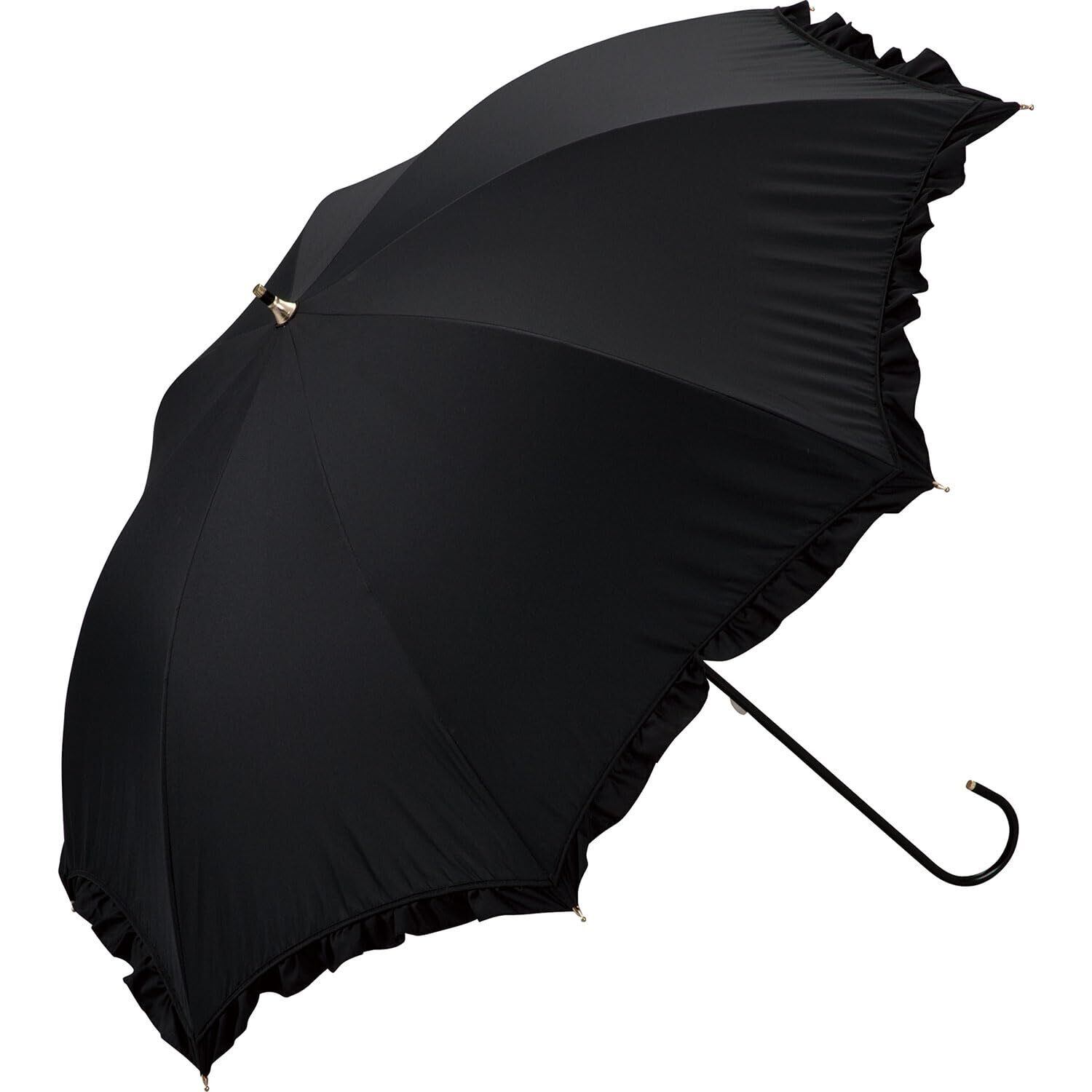【2024】Wpc. 日傘 長傘 遮光クラシックフリル ブラック《遮光率100%・UVカット率100%・UPF50+・晴雨兼用》親骨50cm レディース 通勤 通学 女性 おしゃれ 無地 シンプル 可愛い 81-19017-101