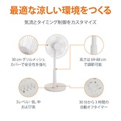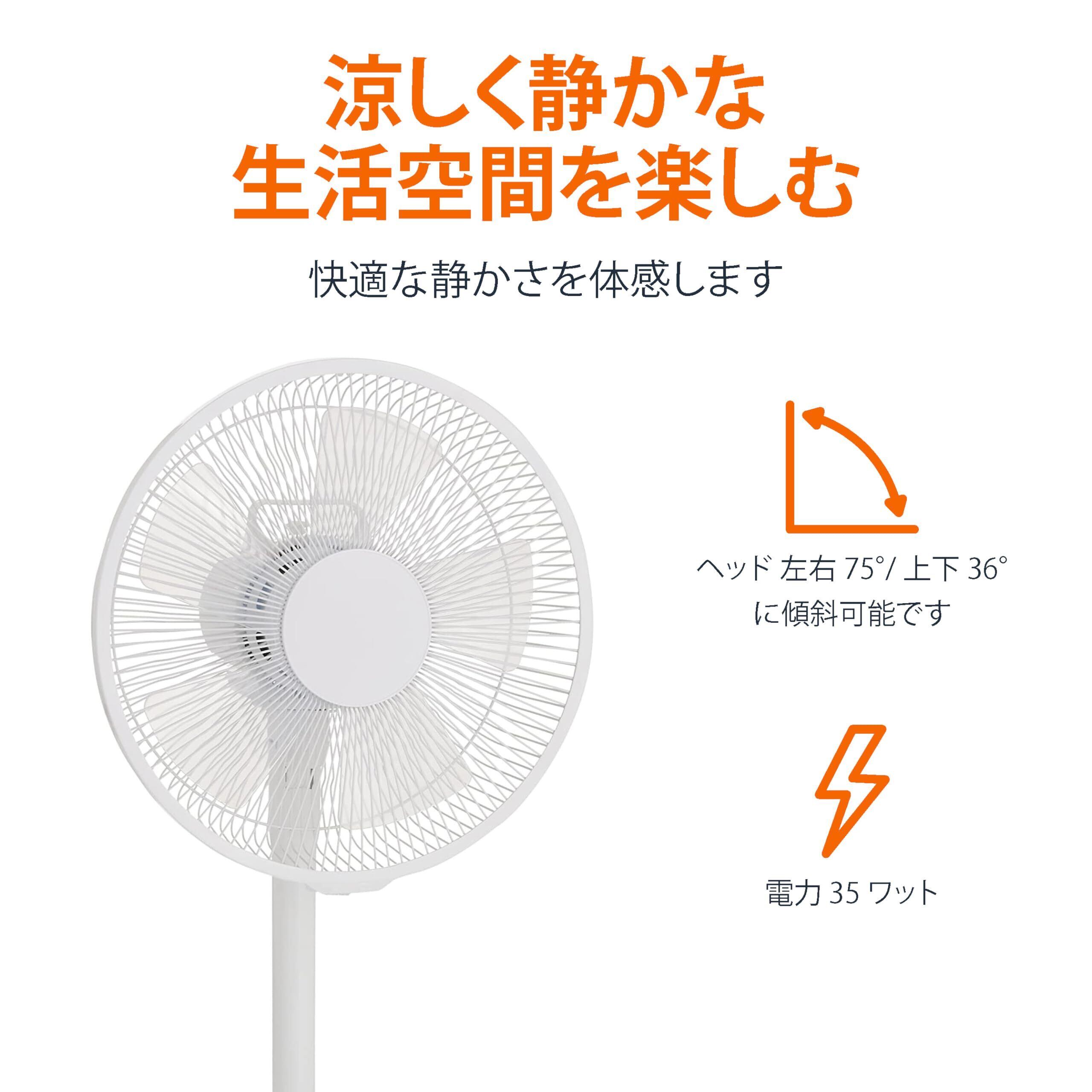 手軽に涼風を送る台座付リビング扇風機。首振り : 左右方向に合計75度 (自動) 、上下方向に合計36度 (手動)