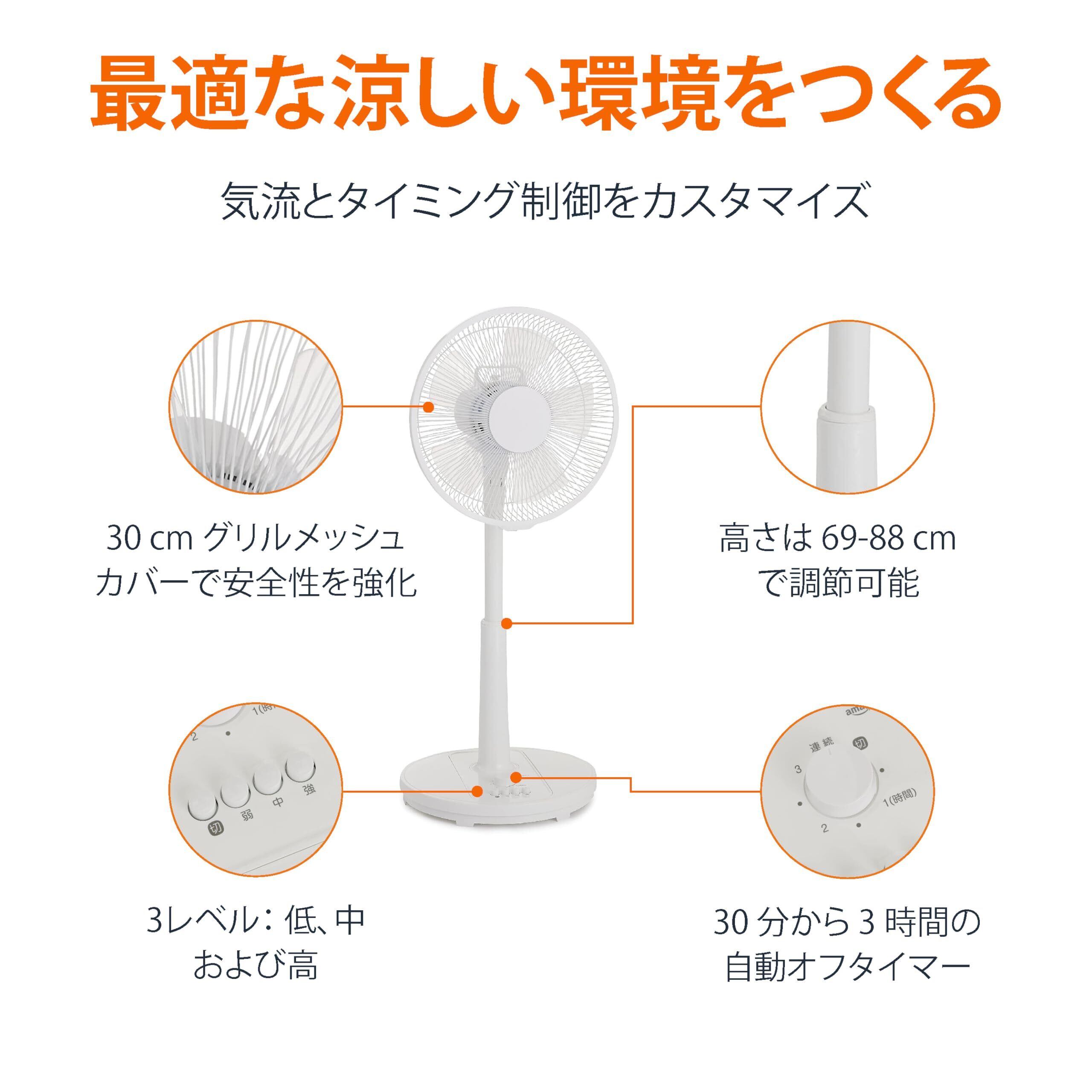 Amazonベーシック リビング扇風機 首振り タイマー機能付 風量調節3段階 ホワイト 羽根直径30cm