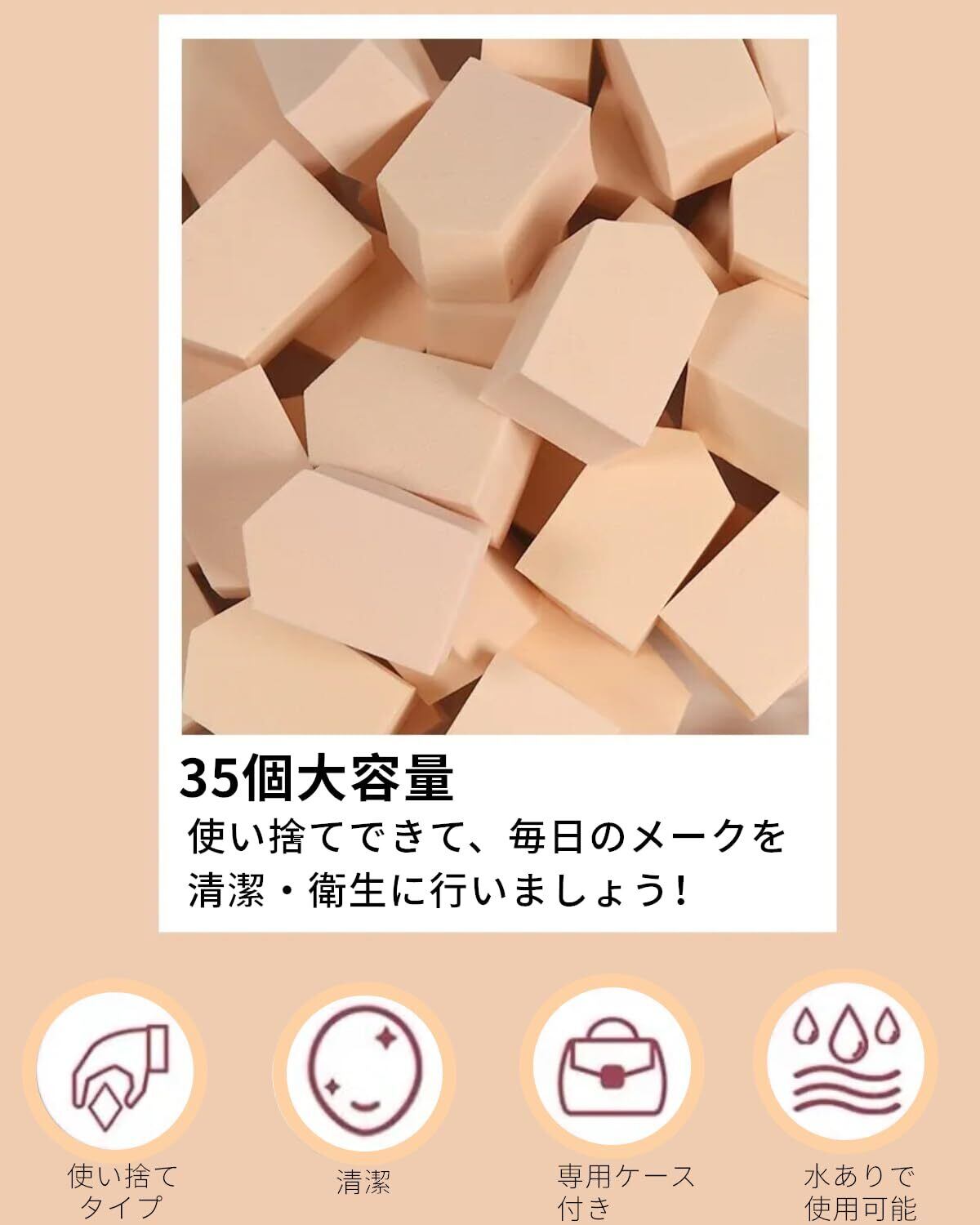 【専用ケース付き!清潔に持ち運び・使用】35個大容量で使い捨てできて、毎日のメイクが清潔で衛生的!または、専用ケース付きで、清潔に持ち運び・収納可能です。