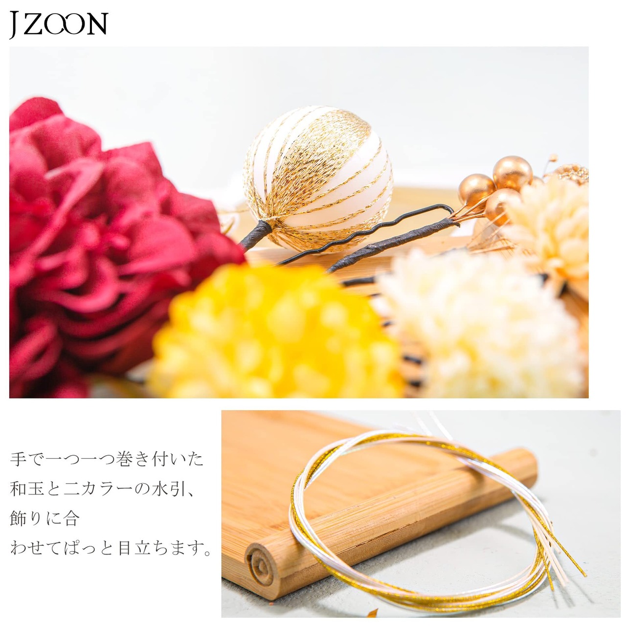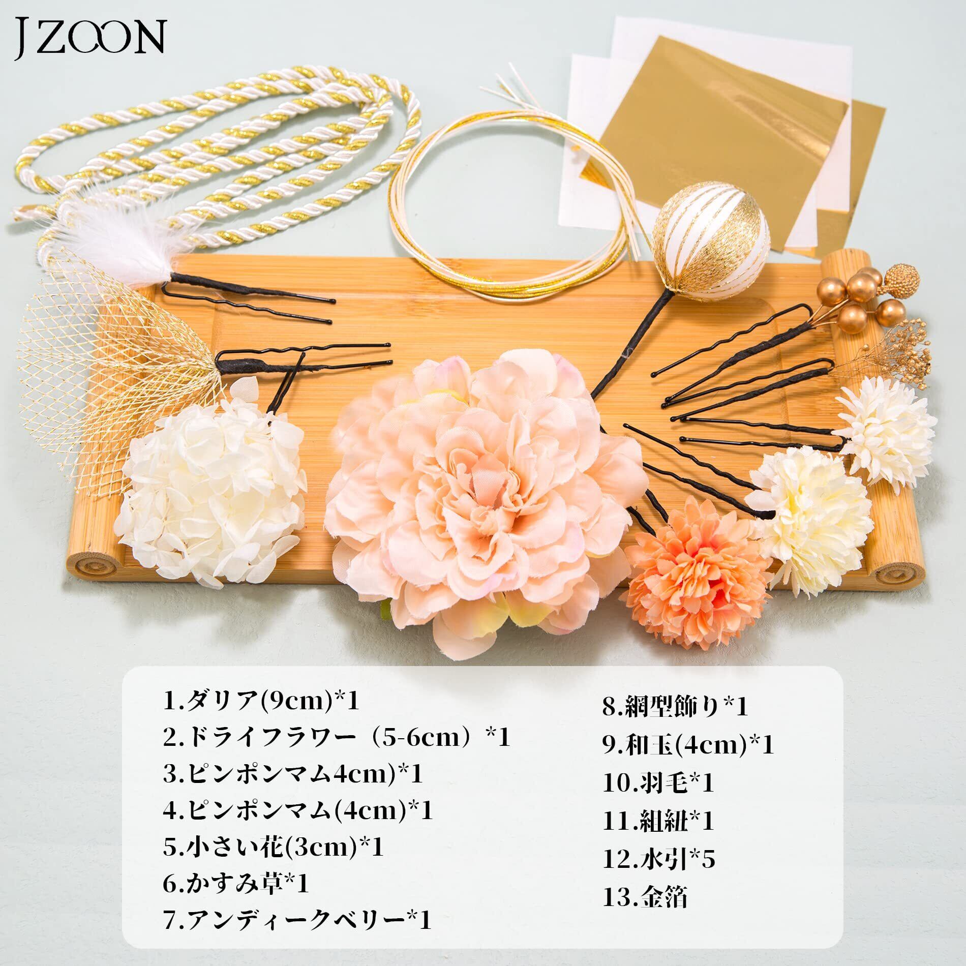 [JZOON] 髪飾り 成人式 髪飾り 8色 ドライフラワー 造花飾り 水引 紐 ダリア ヘアーアクセサリー 和玉 かすみ草 金箔 人気 和服 着物 振袖 袴 花 浴衣 成人式 七五三 結納 卒業式 入学式 結婚式 発表会 (シャンペン)