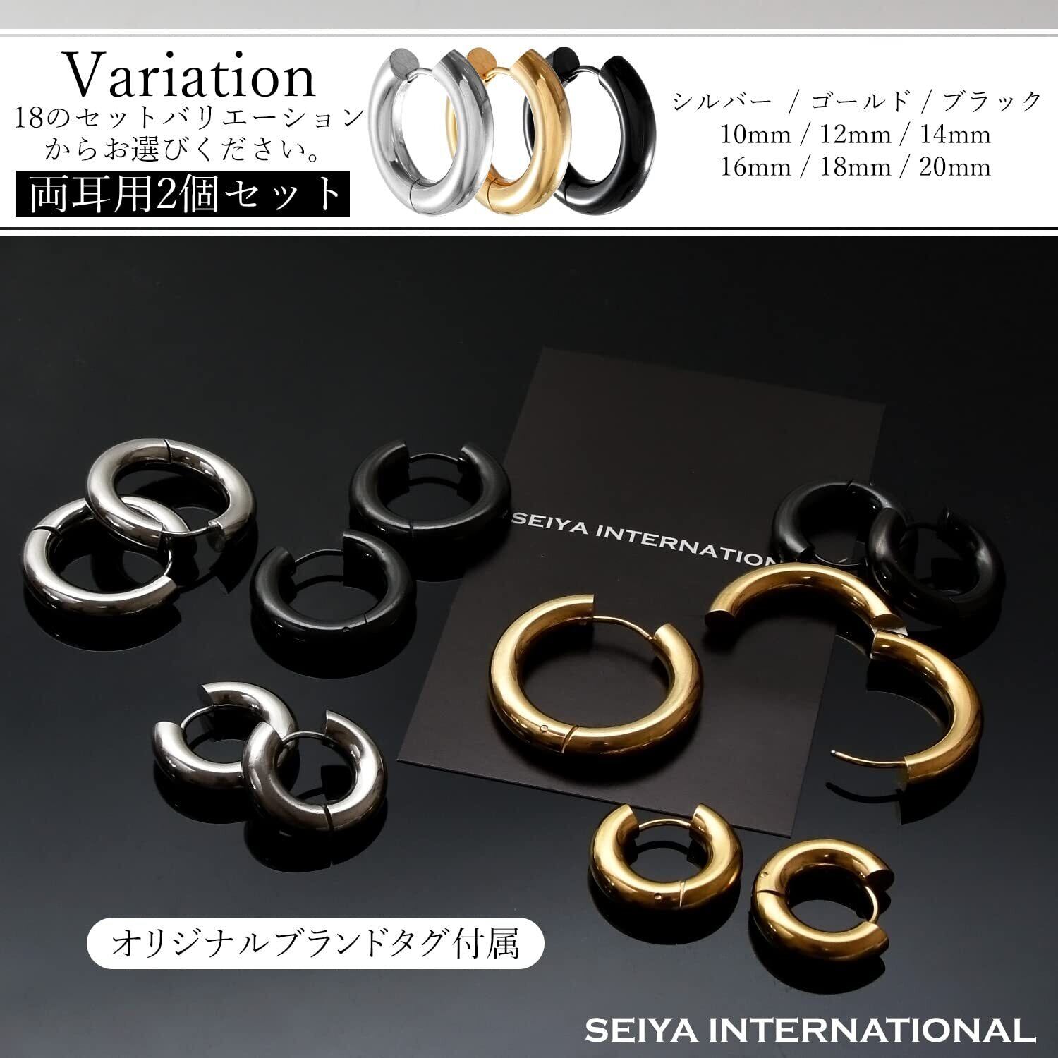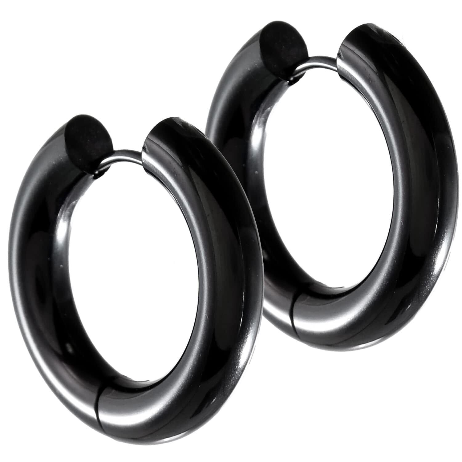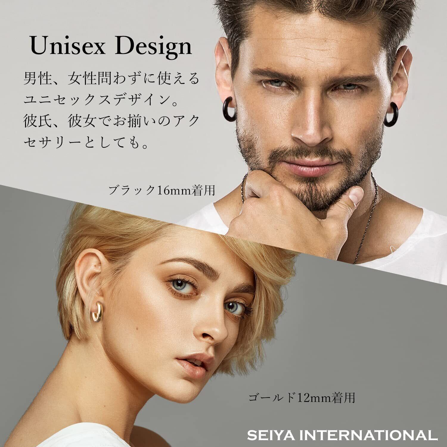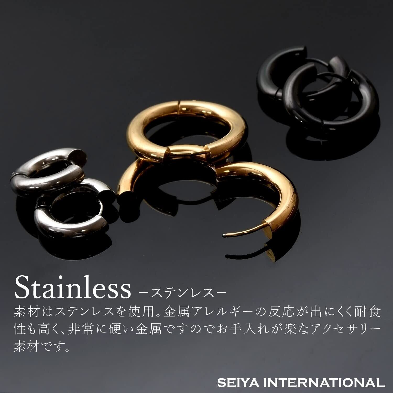 [SEIYA INTERNATIONAL] フープピアス 太め メンズ リングピアス フープ リング ステンレス 両耳 2個セット 幅5mm 18G (ブラック 16mm)
