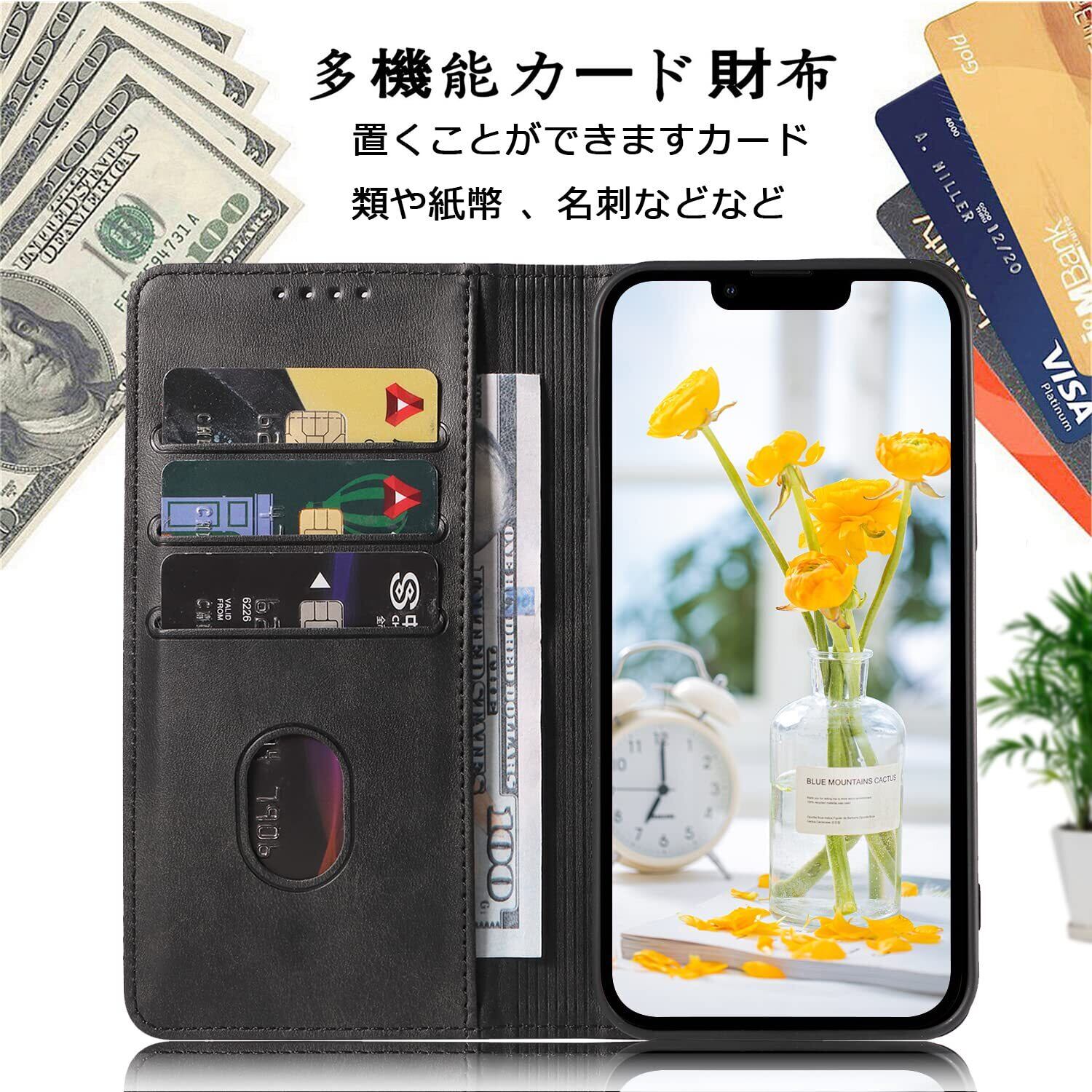 iPhone13 ケース イフォン13 スマホケース 手帳型 携帯カバー レザー 耐衝撃 軽量 着脱しやすい 放熱性 マグネット式 カード収納 スタンド機能 iphone ケース13 対応 360度保護 PinLiSheng (ブラック iphone13)