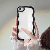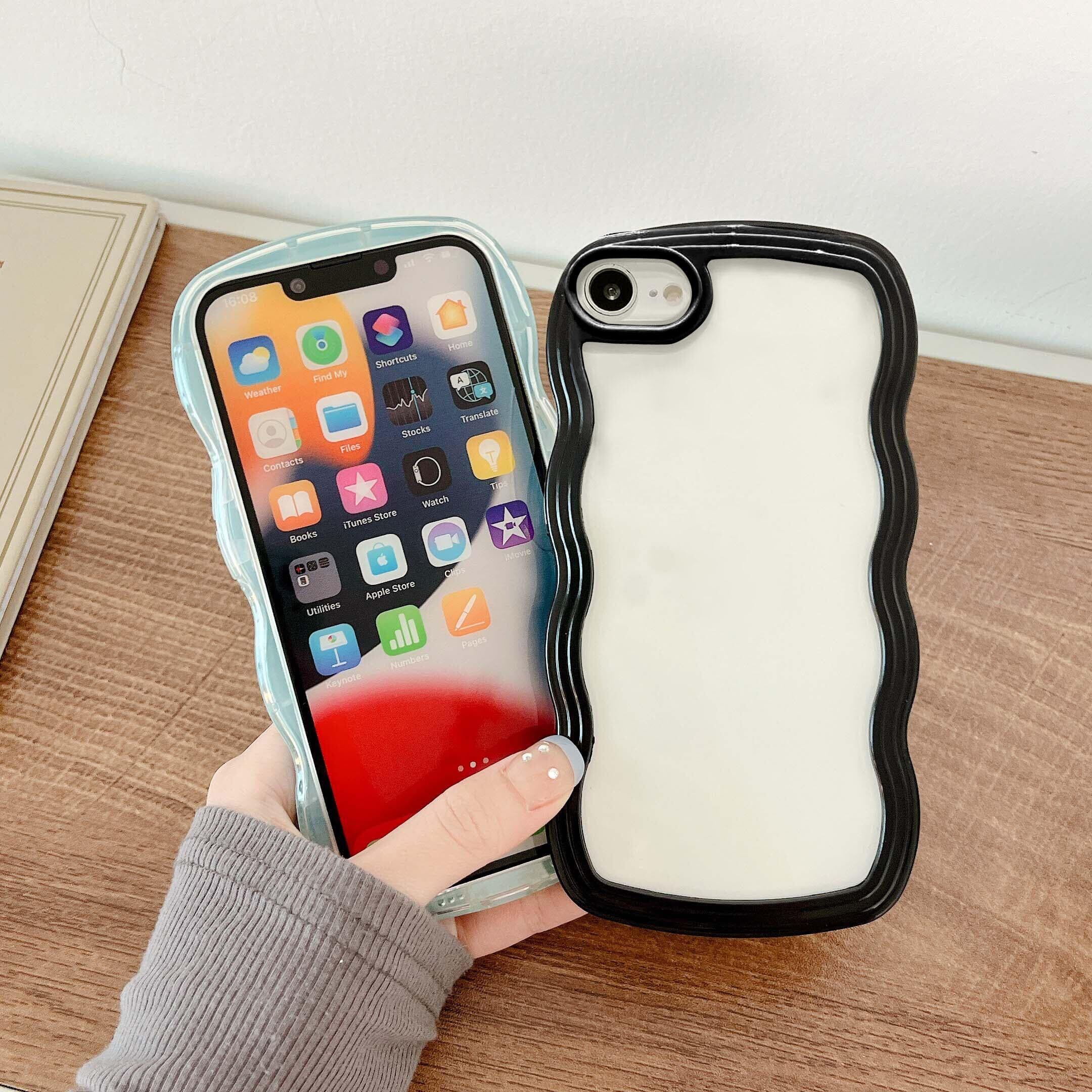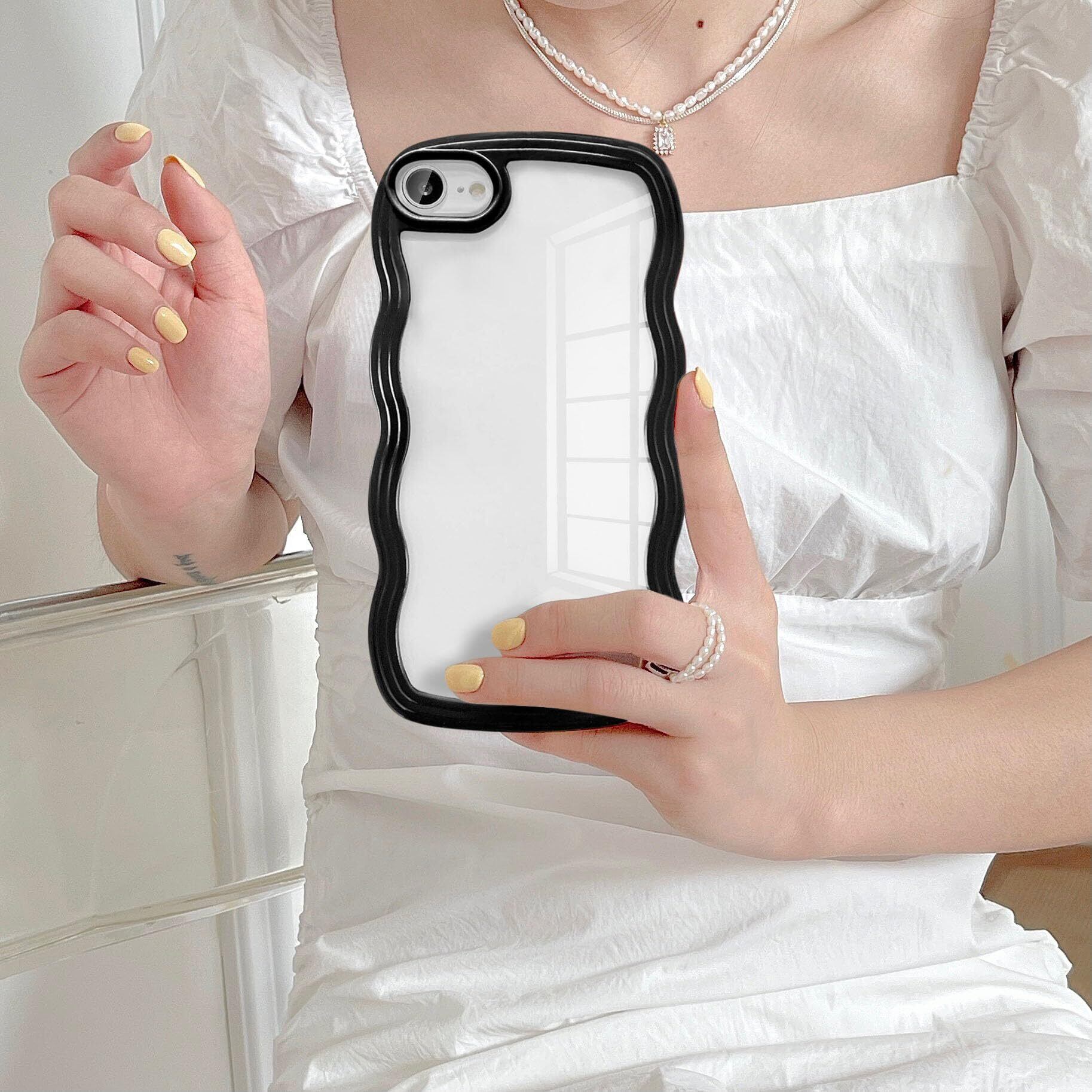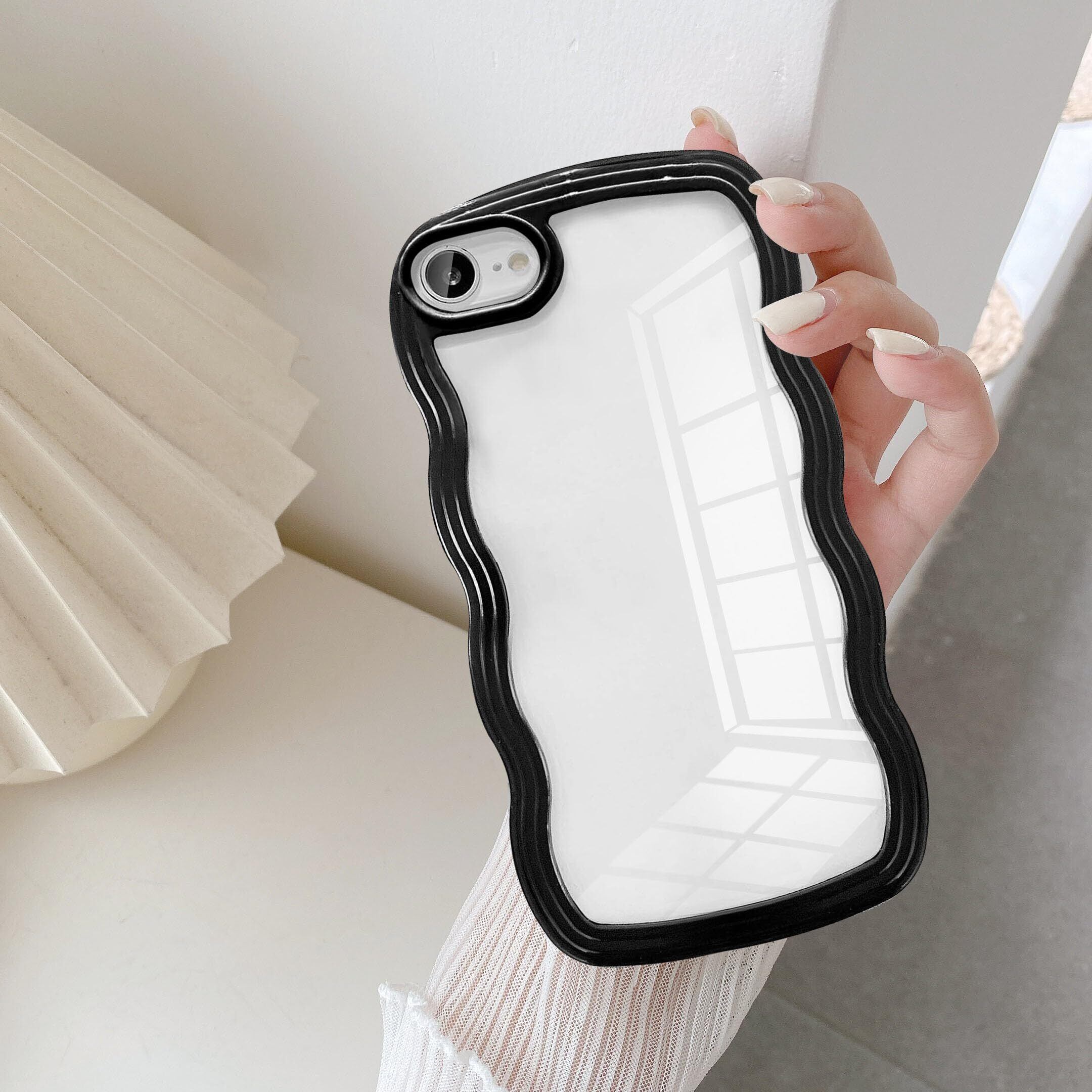 UEEBAI 対応 iPhone 7/iPhone 8 用の ケース ソフト TPU カバー 可愛い おしゃれケース 透明 ウェーブ デザイン スマホケース ワイヤレス充電対応 軽量 薄型 耐衝撃 人気 波型 バンパー スマホケース - ブラック