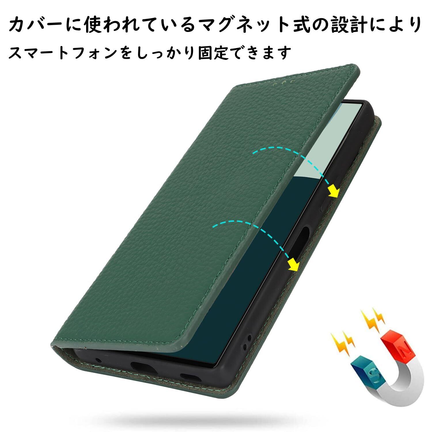 Havaya AQUOS R9 ケース SH-51E ケース AQUOS R9ケース 手帳型 ストラップ 本革 au シャープ Sharp アクオス r9 docomo 耐衝撃 カバー SoftBank カード収納 スタンド機能 レザー -グリーン