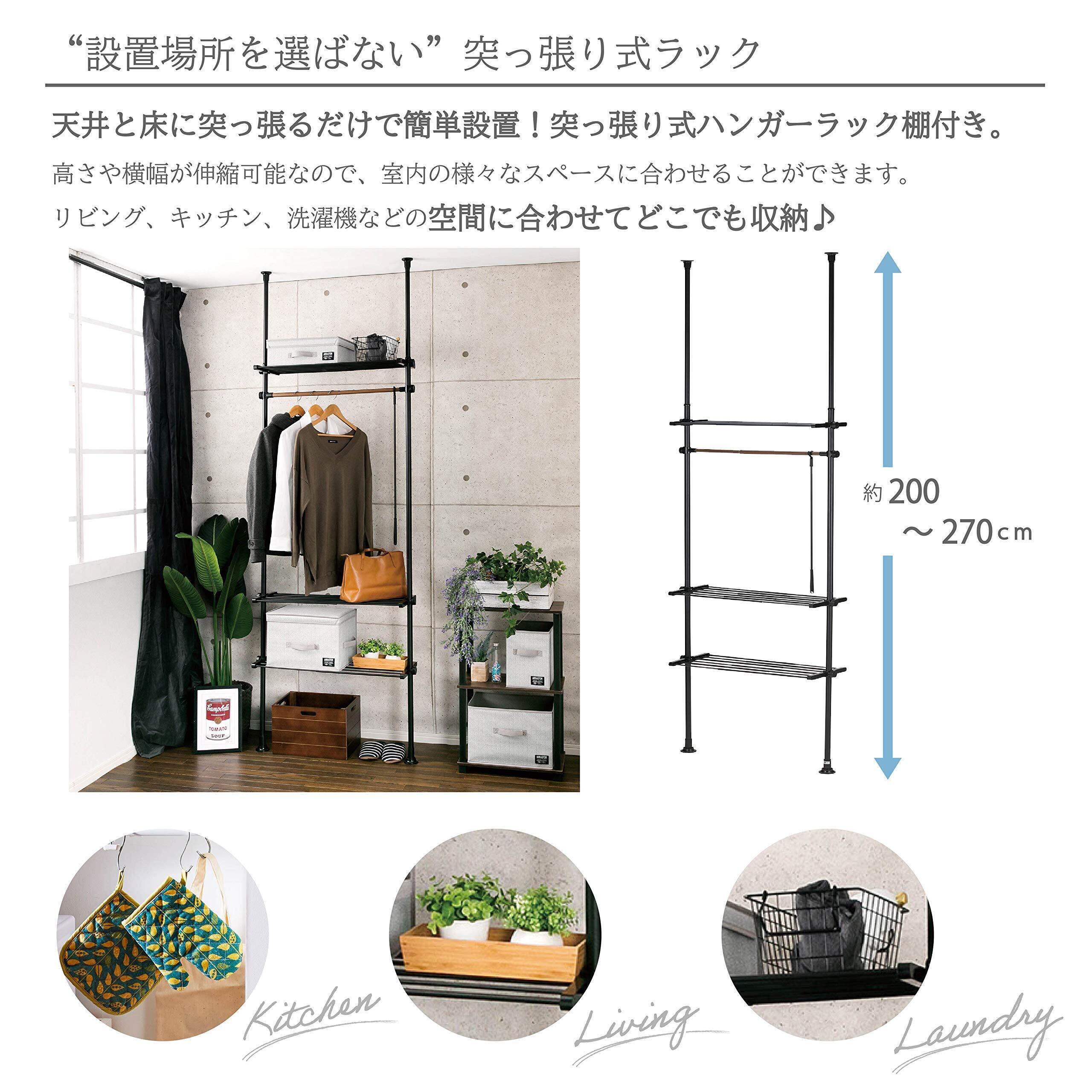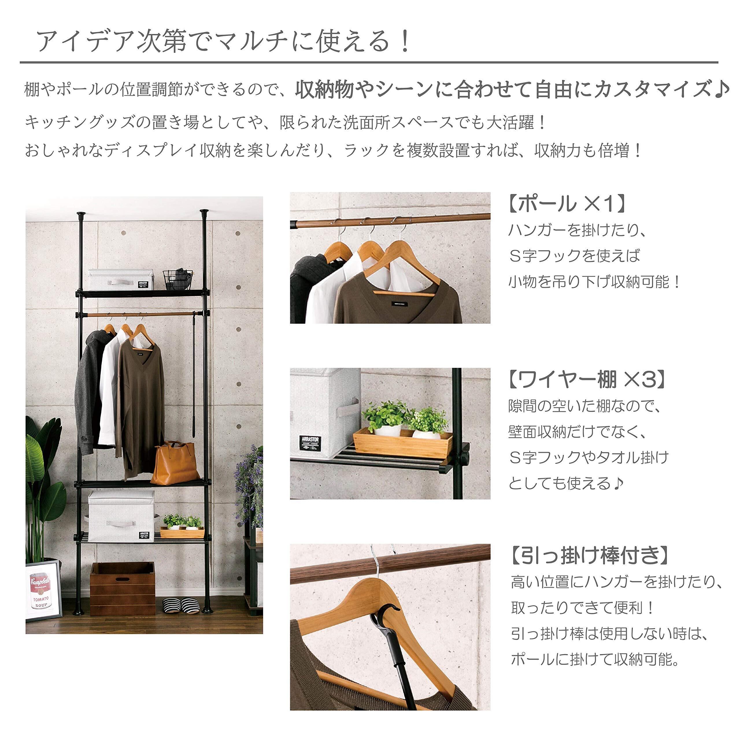 【サイズ】50~80×27×200~270㎝、支柱:直径25.4mm/直径22.2mm【商品重量】4.1㎏ 【耐荷重】全体20㎏/棚1段あたり5㎏・ハンガーポール5㎏