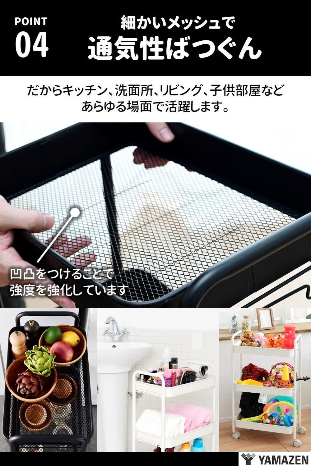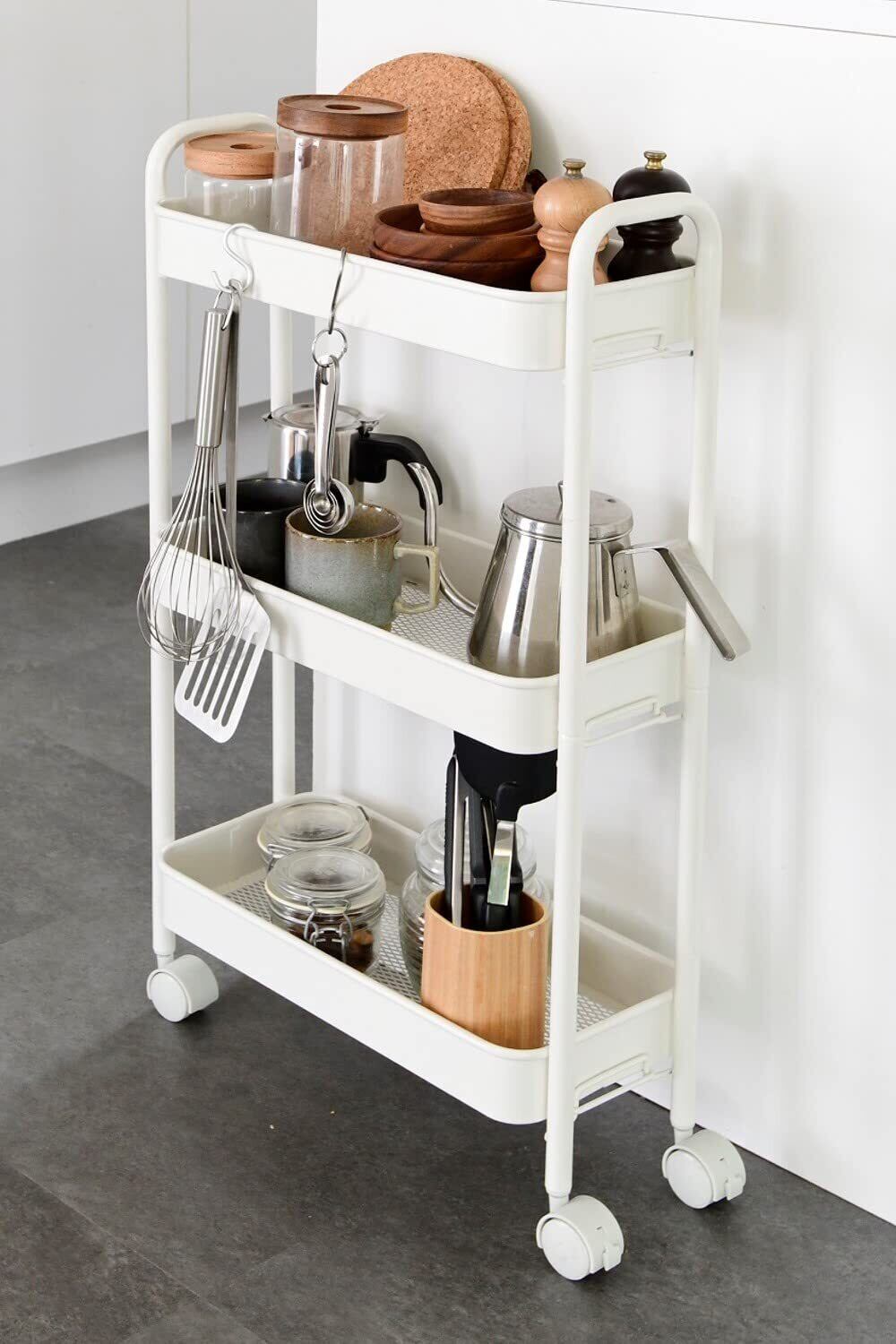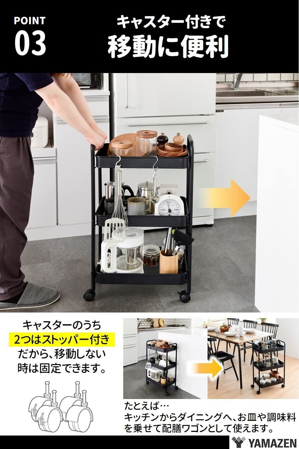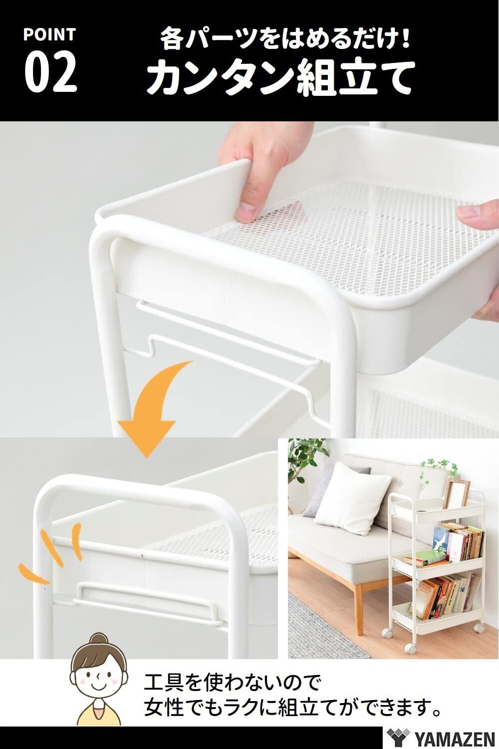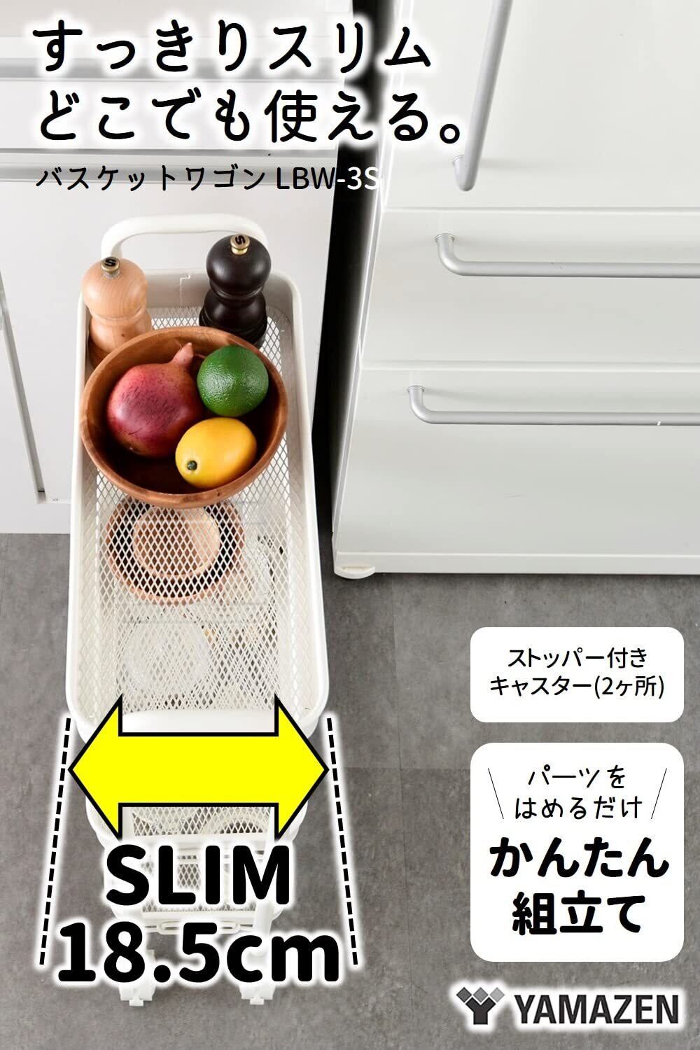 山善(YAMAZEN) キッチンワゴン (スリム) キャスター付き 3段 幅43.5×奥行18.5×高さ74.5cm ワゴン 組立かんたん ホワイトLBW-3S(MWH)