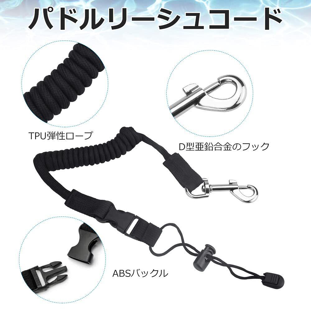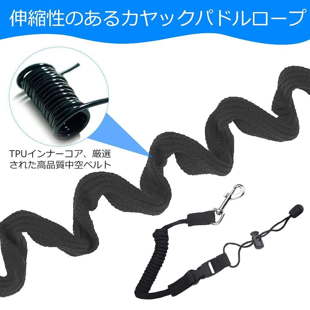 ↝【高品質なパドルリーシュ】:フックは亜鉛合金素材で作られ、優れた耐摩耗性があり、さびや腐食から保護することができます。そして、カヤックパドルリーシュはTPU材質で編まれているので、非常に丈夫です。安心して長時間使用することができます。