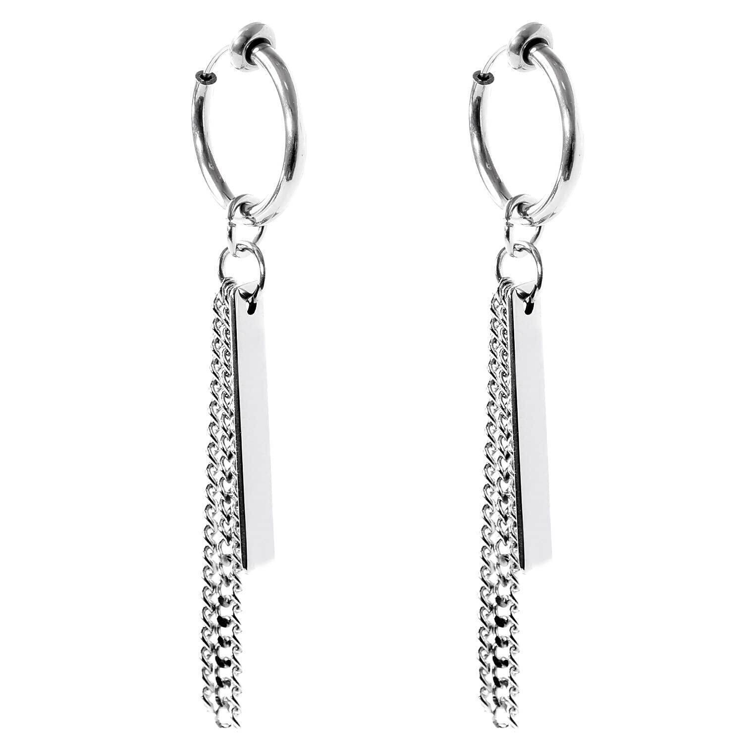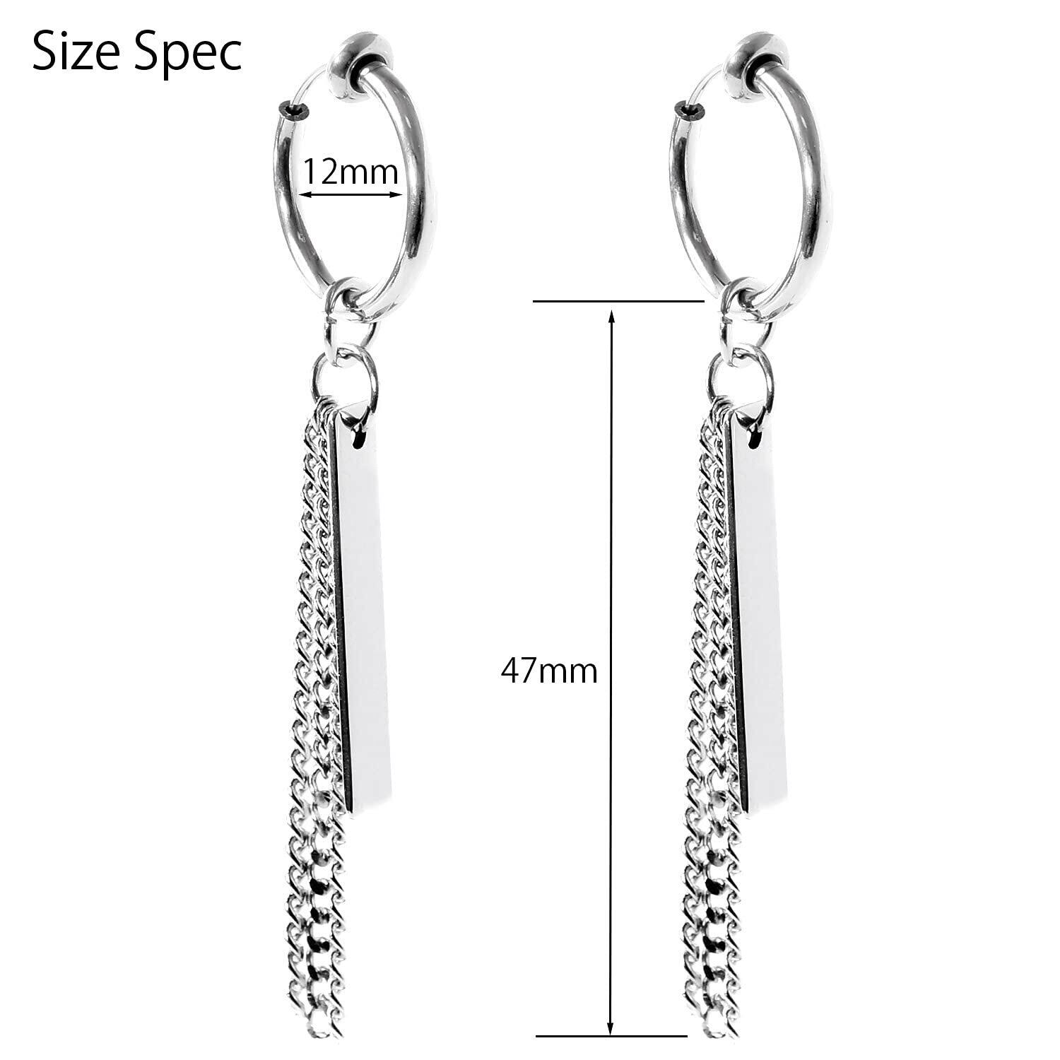 【 デザイン 】定番のフープタイプにチェーンやスティックが付いた揺れるフェイクピアス。チャーム(パーツ)は着けたり外したりできるのでお好みのスタイルで着用可能です。 韓国 K-POPアーティスト、韓国アイドル、日本のダンサー、HIPHOP、B系など多数着用しているデザインです。通常のフープイヤリングに飽きてしまった方にとてもオススメなアクセサリーです。ピアス穴不要なので簡単に着用でき、男性、女性、お友達や同僚、恋人へのクリスマス、バレンタインデー、誕生日などの記念日のプレゼントとしてもオススメです。