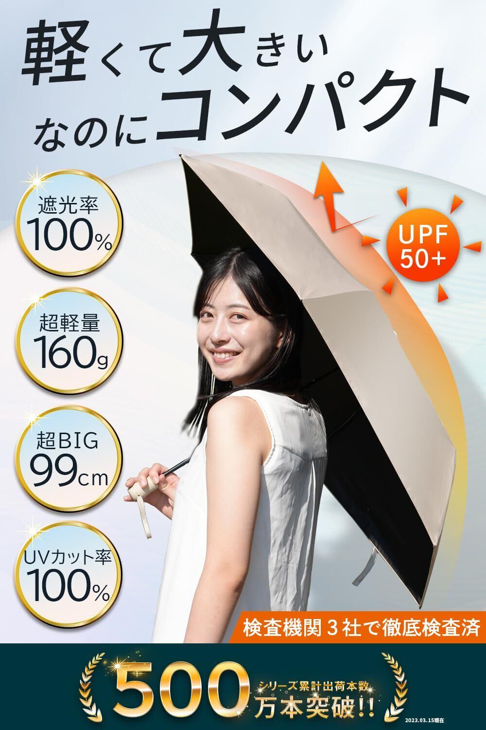 【実用性1】 UPF50+ / 100%UVカット / 100%完全遮光 / 50%遮熱カット / 最先端技術で確かな実力!「国内外3機関(詳細 最下部に表示)」にて徹底検査・実証済み。 【実用性 2】広げた時の直径 「約100 cm」大きいタイプです。日傘男子にもおススメです! .