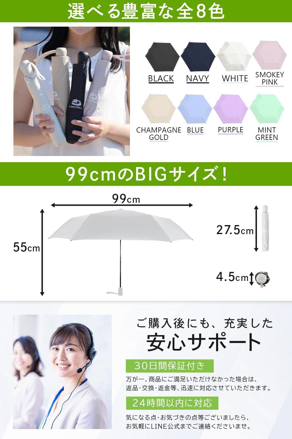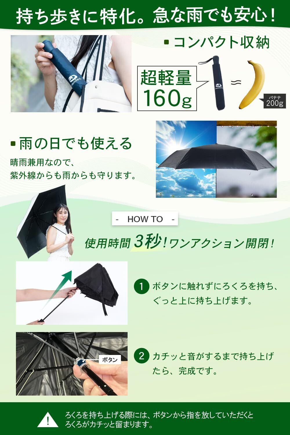 【利便性 1】超軽量「約 160 g」。※耐久性の強いカーボンファイバー骨により頑丈さも実現※ 。 【利便性 2】収納時「幅4.5 cm」。 常備できるコンパクトサイズで通勤、通学、旅行などに持ち歩くのにピッタリ!【利便性 3】専用 ストラップ付き。 .