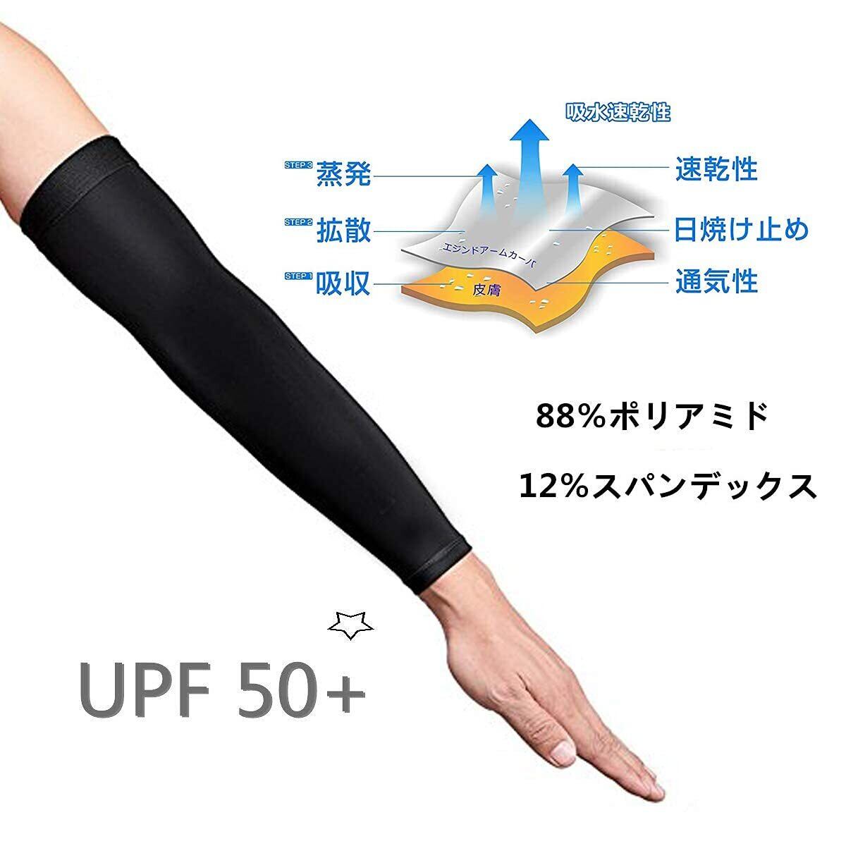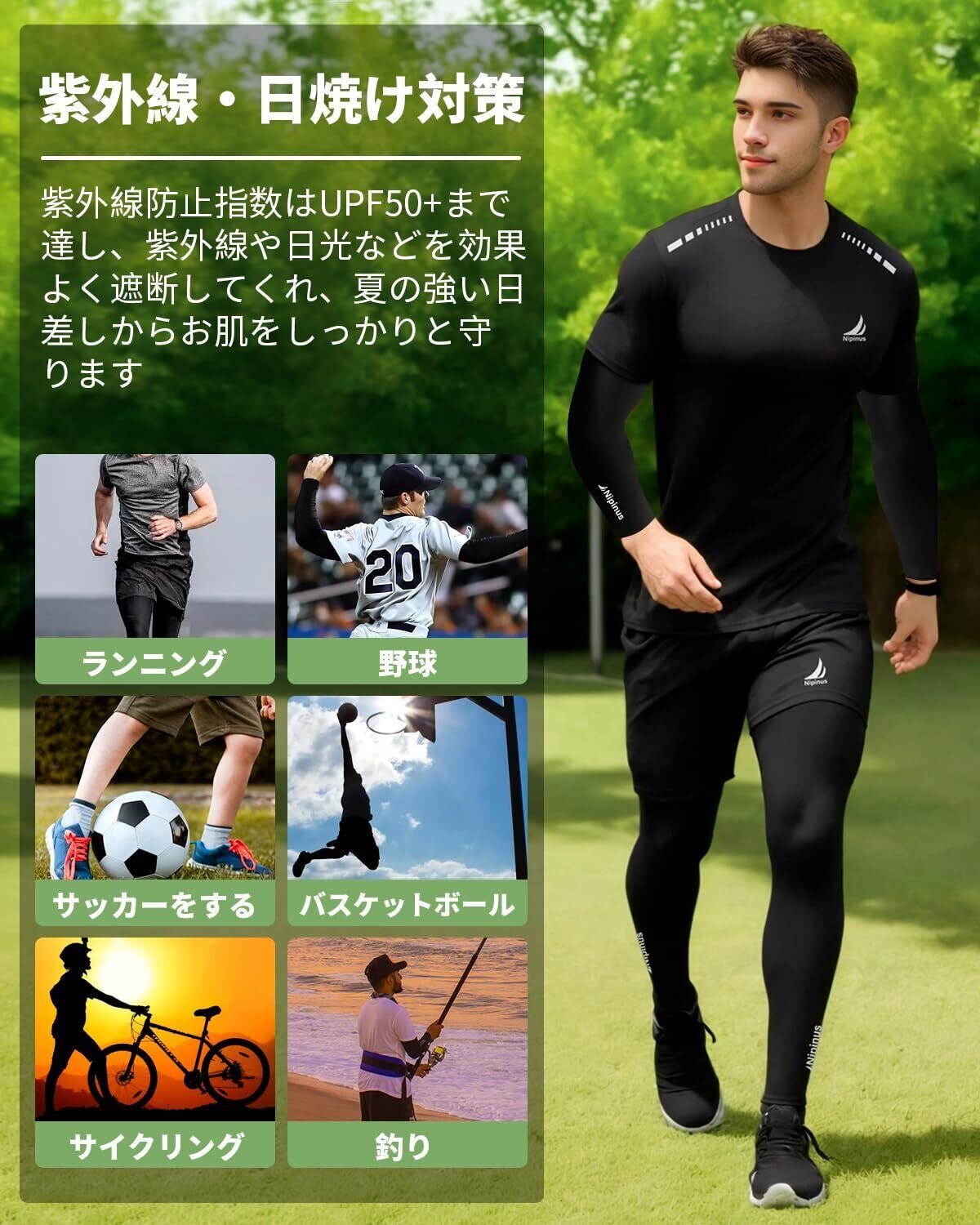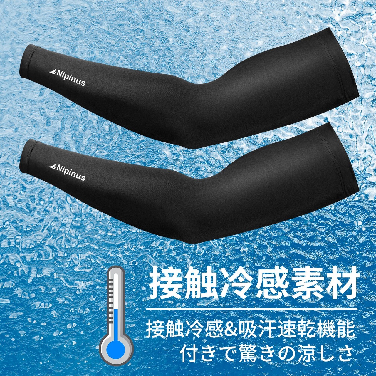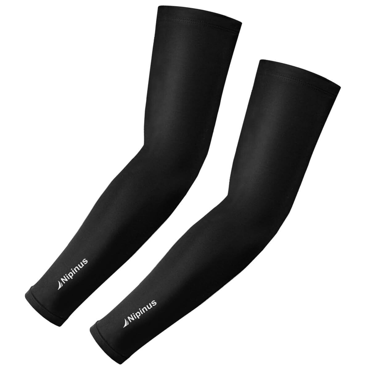 [Nipinus] アームカバー 冷感 日焼け防止 腕カバー アームスリーブ UPF50 速乾 滑り止め スポーツ活動用 軽量 男女兼用 両腕/セット (ブラック, M)