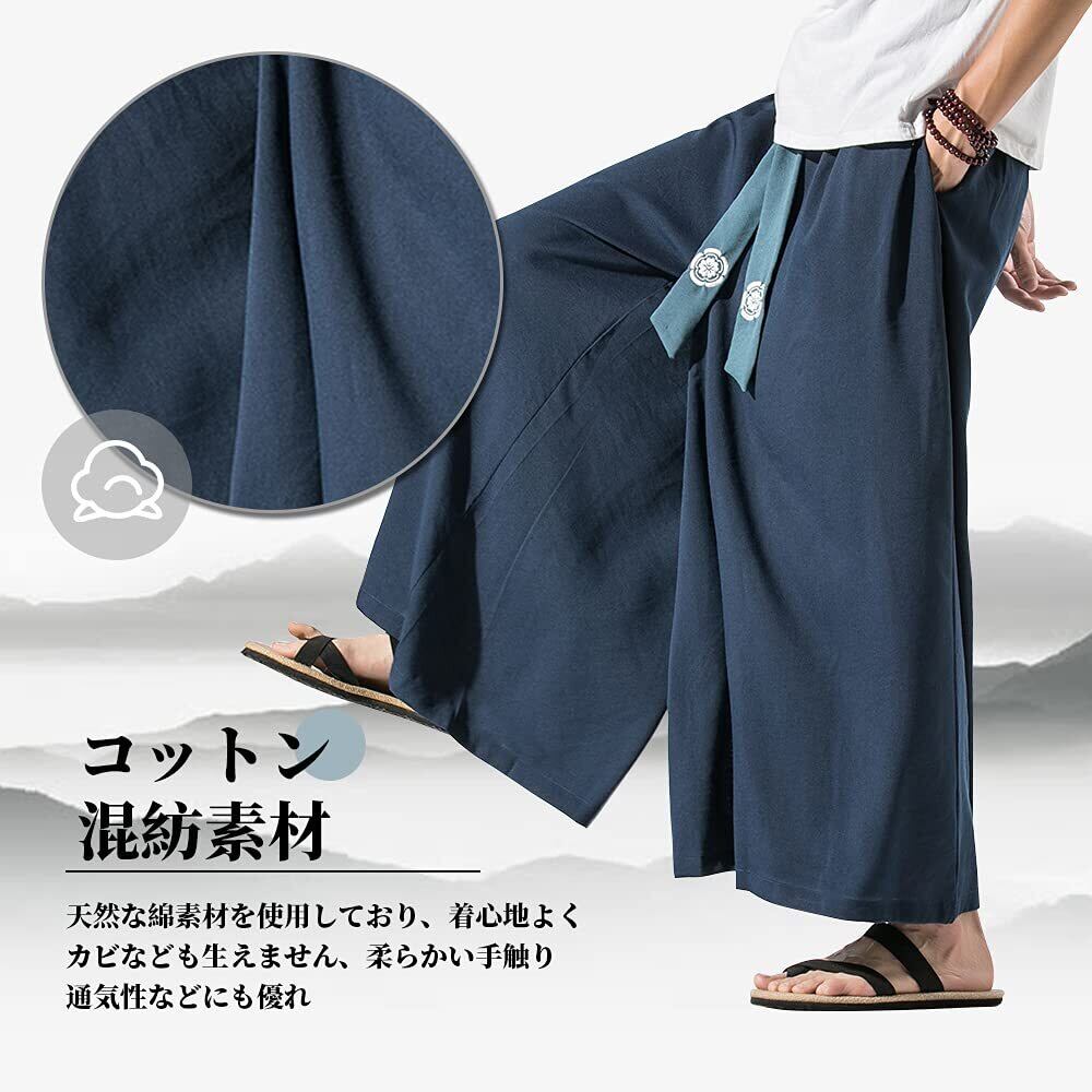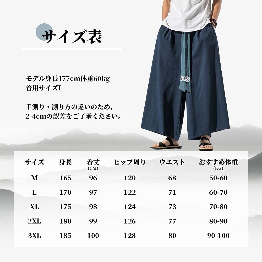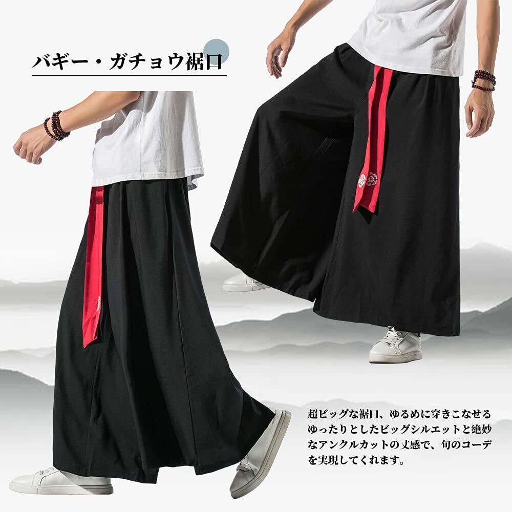 [KOGARASI] ワイドパンツ 袴パンツ メンズ ガチョウパンツ ゆったり ベルト付き 和柄 無地 麻 和式ズボン サルエル ビッグシルエット 黒 ブラック 衣装 大きいサイズ ルームウェア オールシーズン ゆるゆる 男女兼用