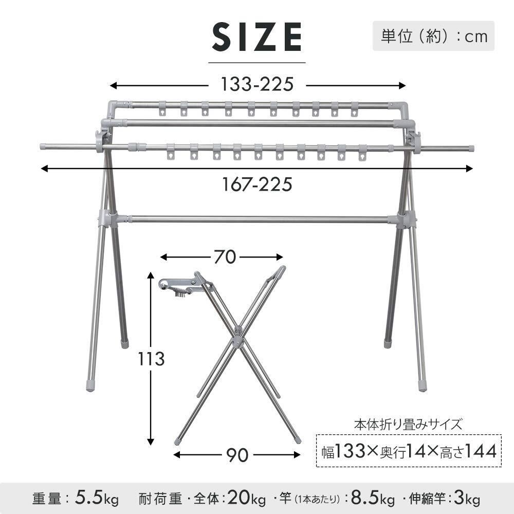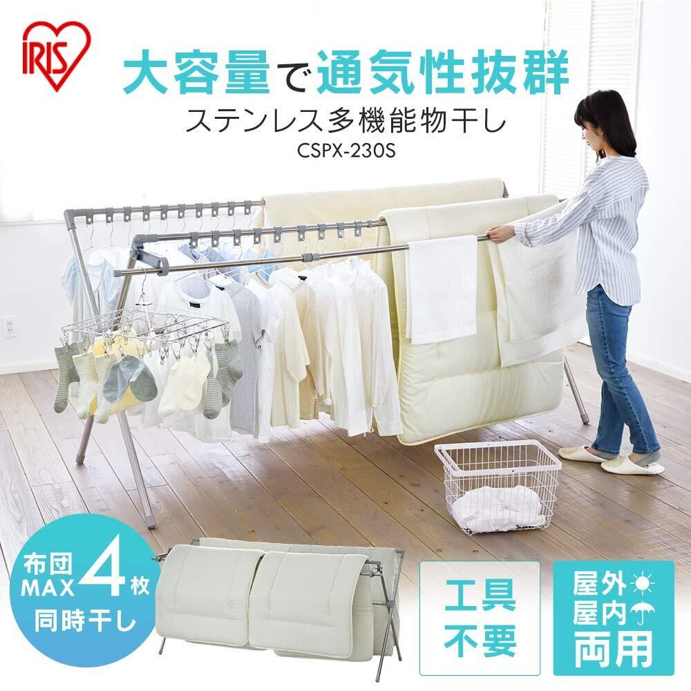 アイリスオーヤマ ステンレス鋼 物干し 布団も干せる 多機能 伸縮 布団4枚分 布団干し ダブルバー CSPX-230S 無地(ホワイト)