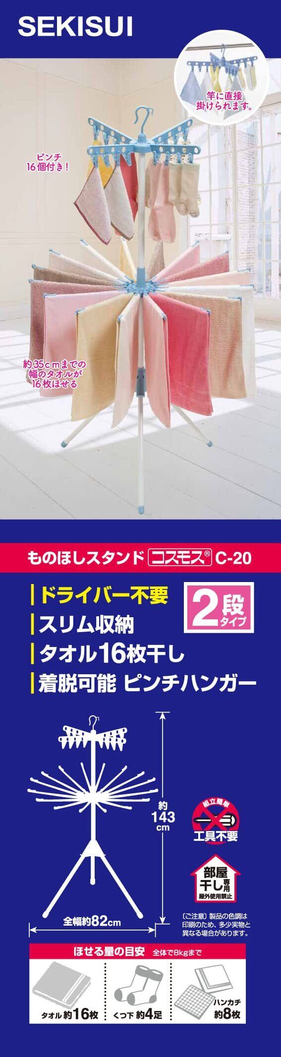 積水樹脂 ものほしスタンドコスモス2段 ホワイト&ブルー