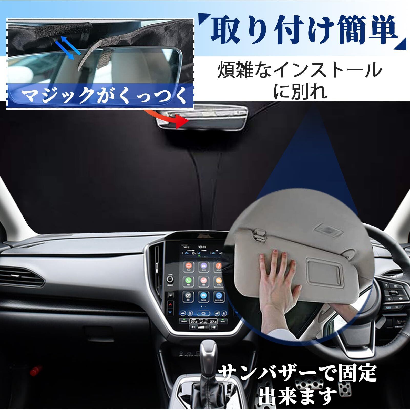 【簡単着脱/収納】吸盤と接着剤を使用する代わりに、それは光シールドとフロントビューミラーによって直接固定されます。 取り付けが簡単なだけでなく、ガラスにダメージを与えません。一人で気楽に使って、すばやく開けて収納して、煩雑なインストールに別れを告げます。