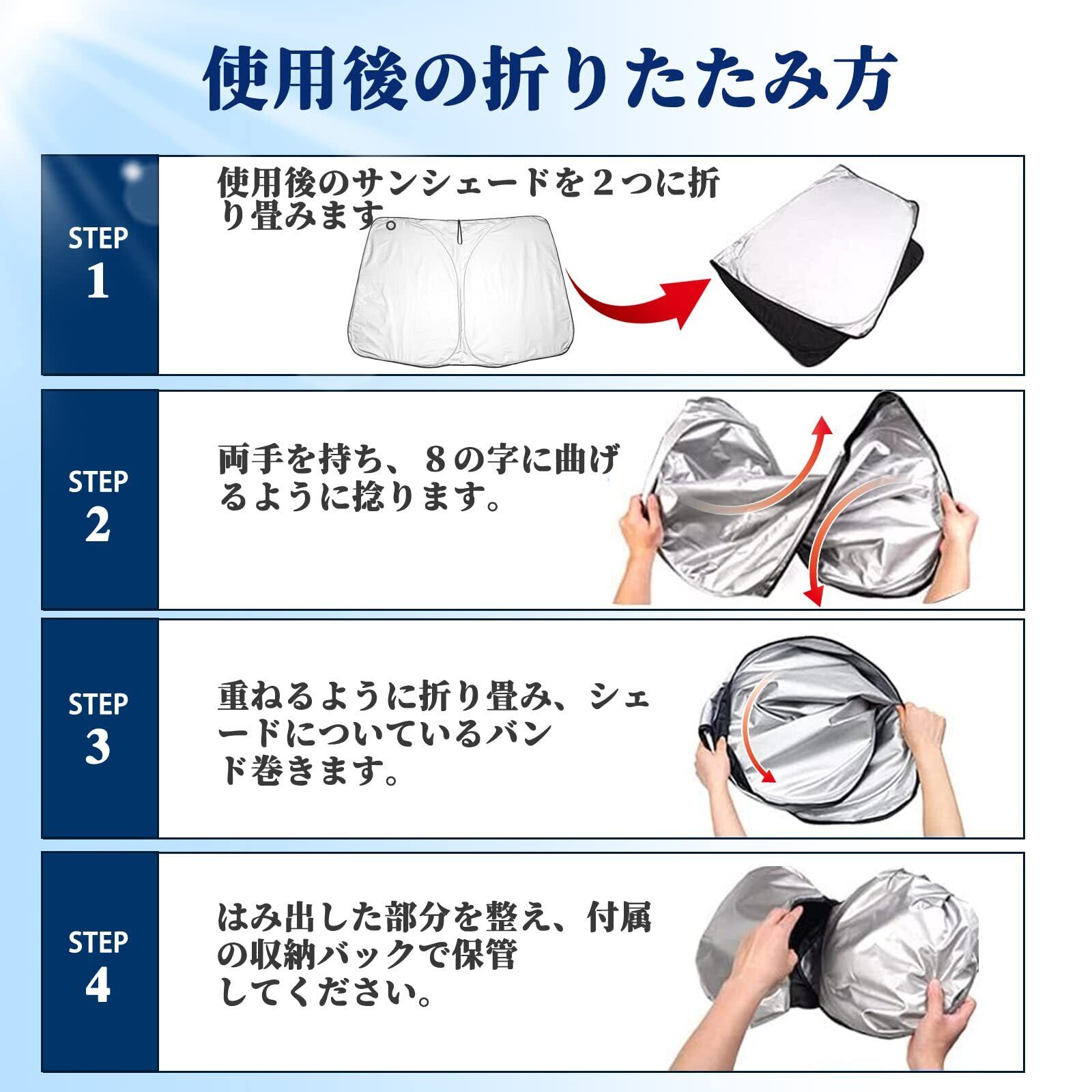 【多機能&プライバシー】サンシェードは、熱を遮断して太陽光を反射し、車内の温度を効果的に下げ、ダメージや経年劣化を防ぎます。車中泊や休憩時など、外からの視線が気になるときにも役立ち、プライバシーも保護できます。