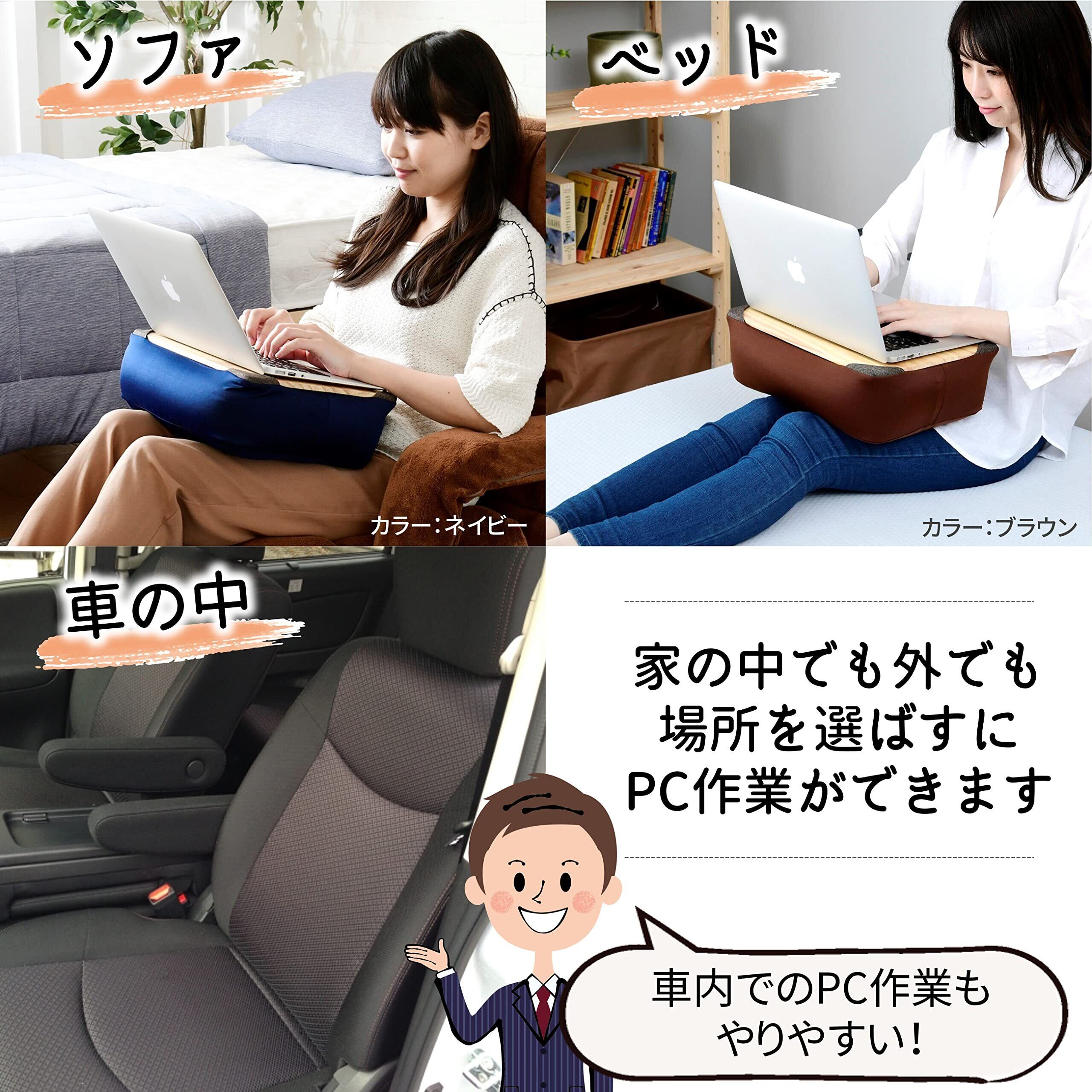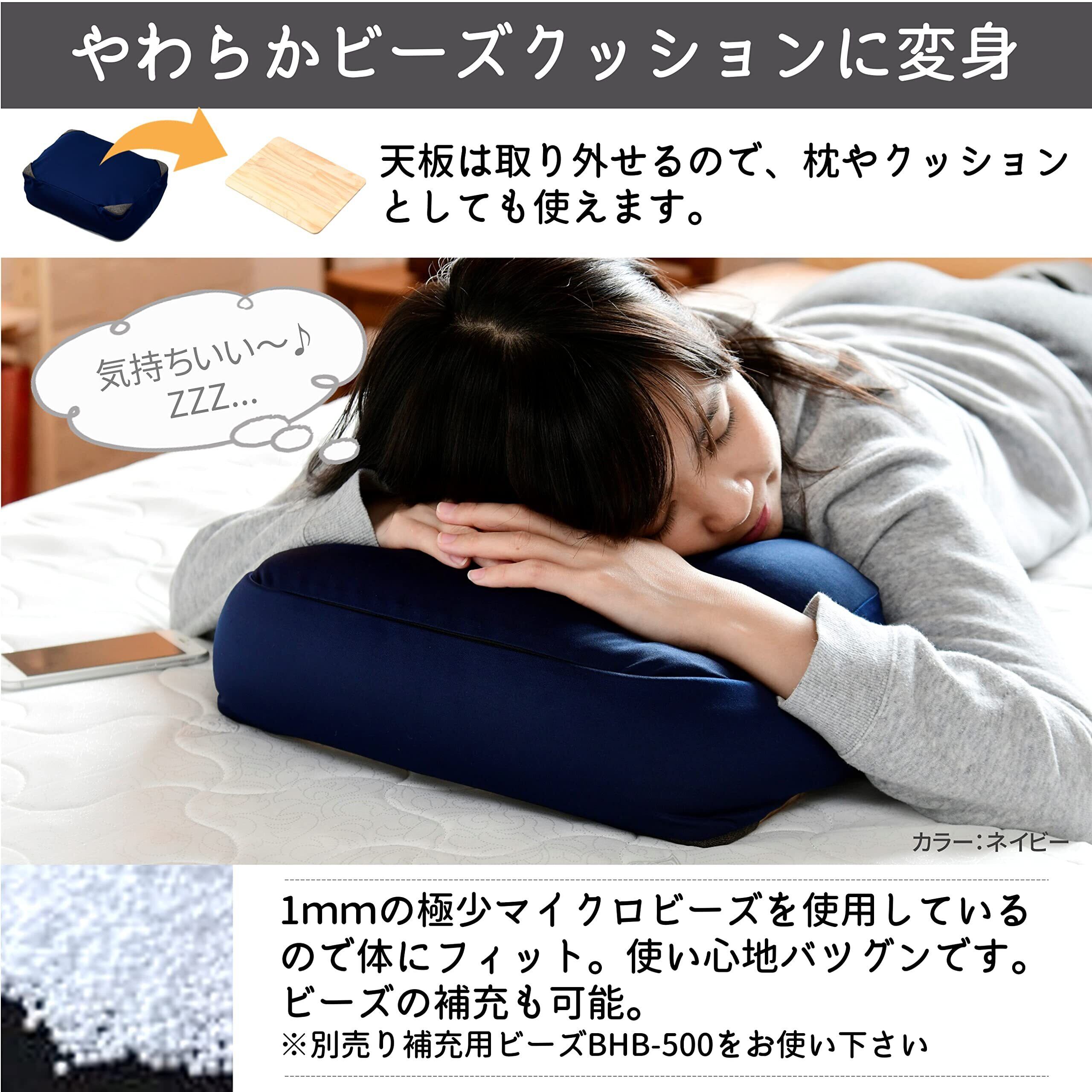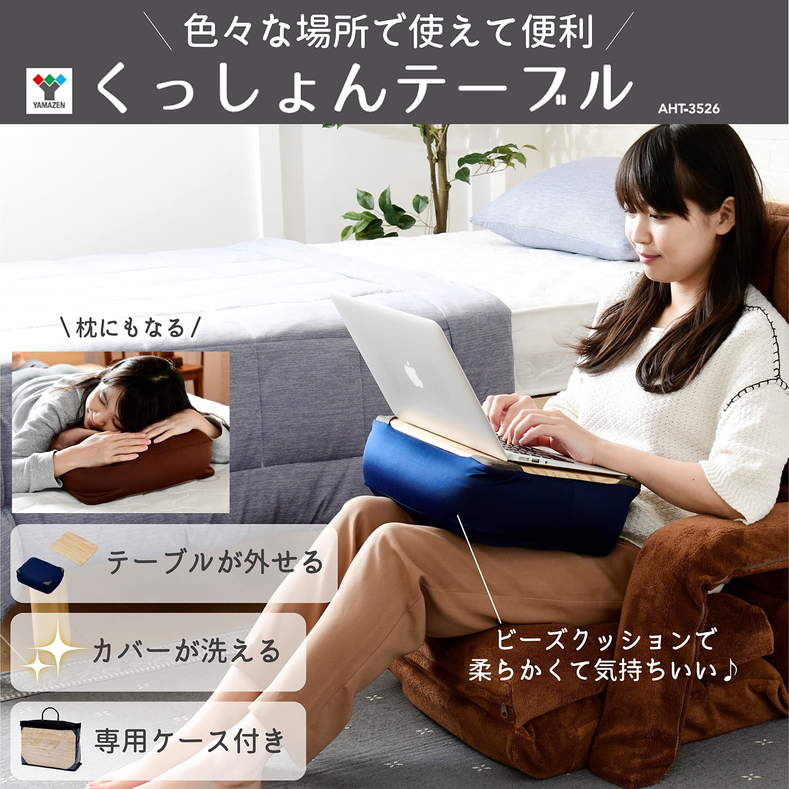 山善(YAMAZEN) ビーズクッション (膝上テーブル) 天板が取り外せる カバーが洗える ビーズ補充可 専用ケース付き クッションテーブル PCテーブル ネイビー AHT-3526(NV)