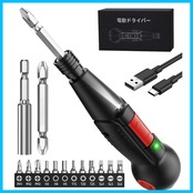 【パッケージ内容&安心アフターサービス】電動ドライバー本体*1、ビットセット*12(PH1、PH2、PH3、H3、H4、H5、T15、T20、T25、SL4、SL5、SL6)、延長ビット*1、両頭ビット*1、充電ケーブル*1、ストラップ*1、取扱説明書*1 、USB充電ケーブル、日本語取扱説明書が付属しています。さらに、365日間の保証と24時間以内の迅速なカスタマーサポートをご提供。万が一商品に不具合が生じた場合やご満足いただけない場合は、ご購入のショップからメールでお問い合わせいただくか、アマゾンの「アカウントサービス」→「注文履歴」→「販売元」→「質問する」からご連絡ください。説明書に記載の連絡先でも対応可能です。