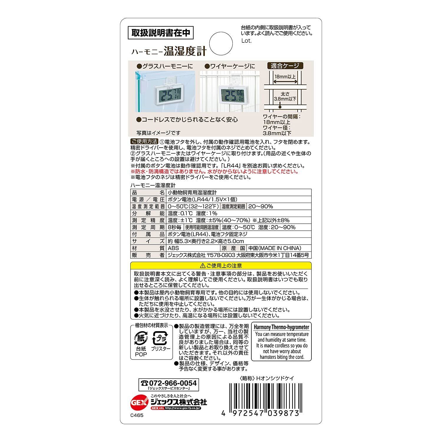 GEXジェックス Harmony ハーモニーサーモ温湿度計 コードレス デジタル表示 ハムスター・小動物用
