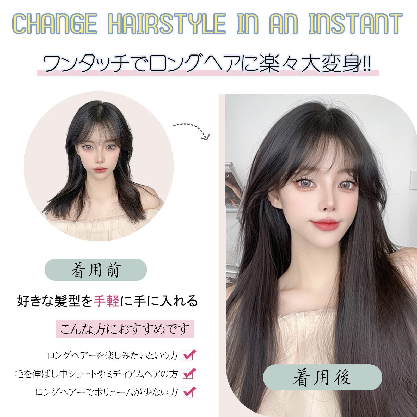 【自然な髪質】: 高級耐熱ファイバーで作られ、光沢感が自然、柔らかい手触り、サラサラの髪質で地毛とも馴染ませやすい!アイロン、コテ、ドライヤーなど160℃まで使用可能。