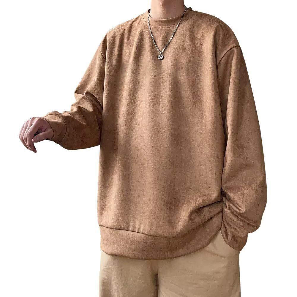 [Fuyumoe] 秋服 メンズ スエード トレーナー メンズ 大きいサイズ クールネック おしゃれ 冬服 春服 メンズトレーナー プルオーバー メンズ 無地 ロンt シンプル トップス カジュアル 春 秋 冬 コーヒー L