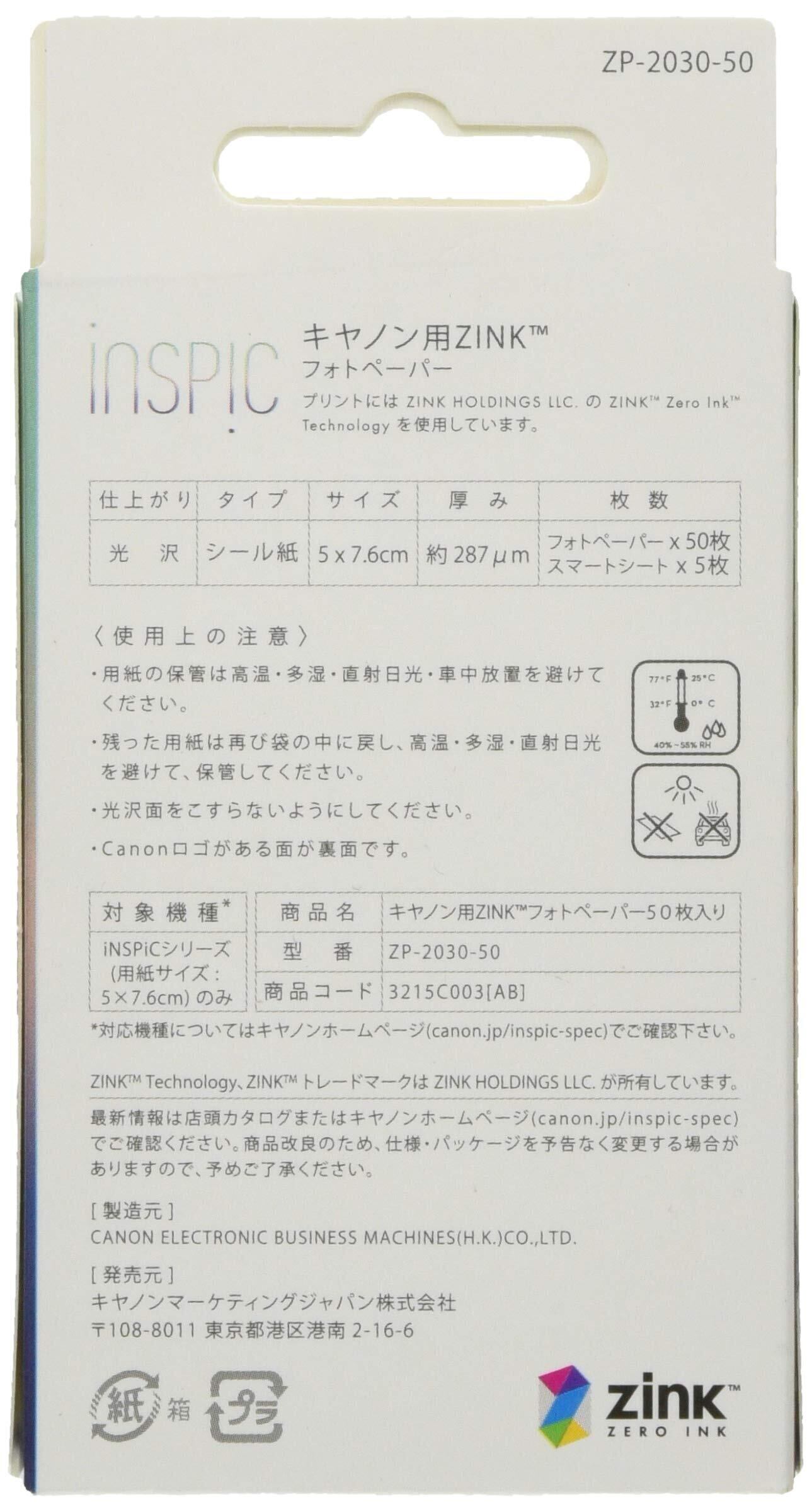 キヤノン Canon スマホプリンター用 ZINKフォトペーパー 50枚入り
