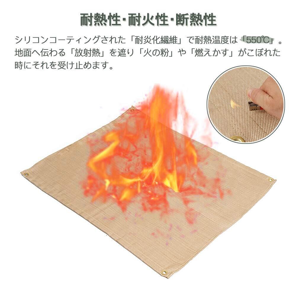 たき火台シート 80cm×60cm 焚き火シート 防火シート 耐熱 耐火 防炎 ガラス繊維 焚き火台 シート 芝生保護 バーベキュー用品 キャンプ/BBQなどに 収納袋付き (80cm×60cm)