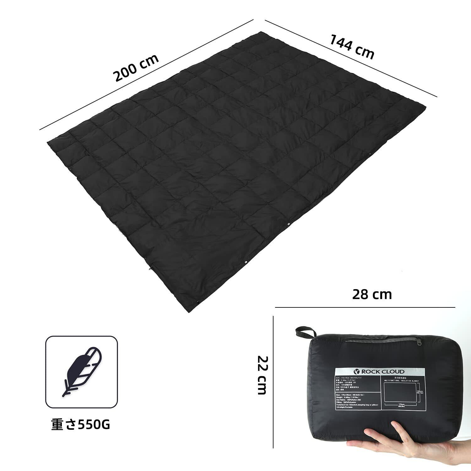 Rock Cloud ブランケット 大きめ キャンプ Large 収納袋一体 多機能 ダウン 毛布 ひざ掛け 200x144cm 防寒 掛け布団 超軽量 キャンプ ブランケット コンパクト 暖かい 柔らかい 車中泊 テント 登山 アウトドア 旅行 (ブラック)