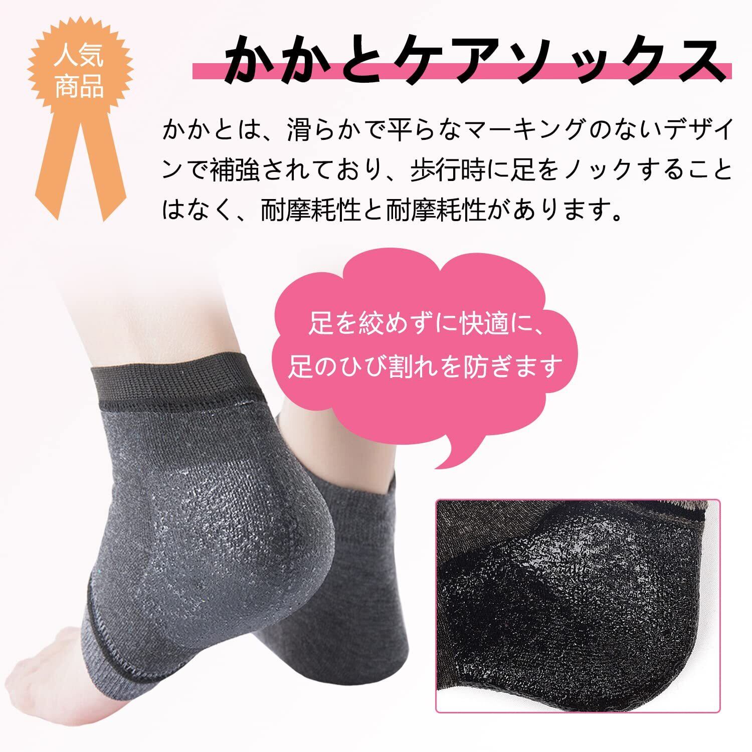 【デオドラント加工】かかと保湿靴下 主な素材:綿混+ジェル。脱臭加工の綿混紡素材を使用しているので、汗をかいても臭いやムレを気にする必要がありません。つま先が蒸れず、睡眠を妨げません。着用後の滑りにくいです;