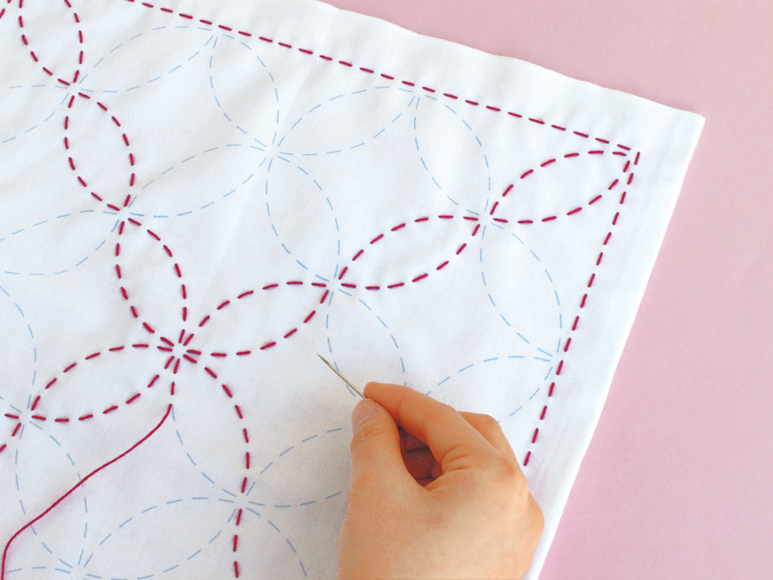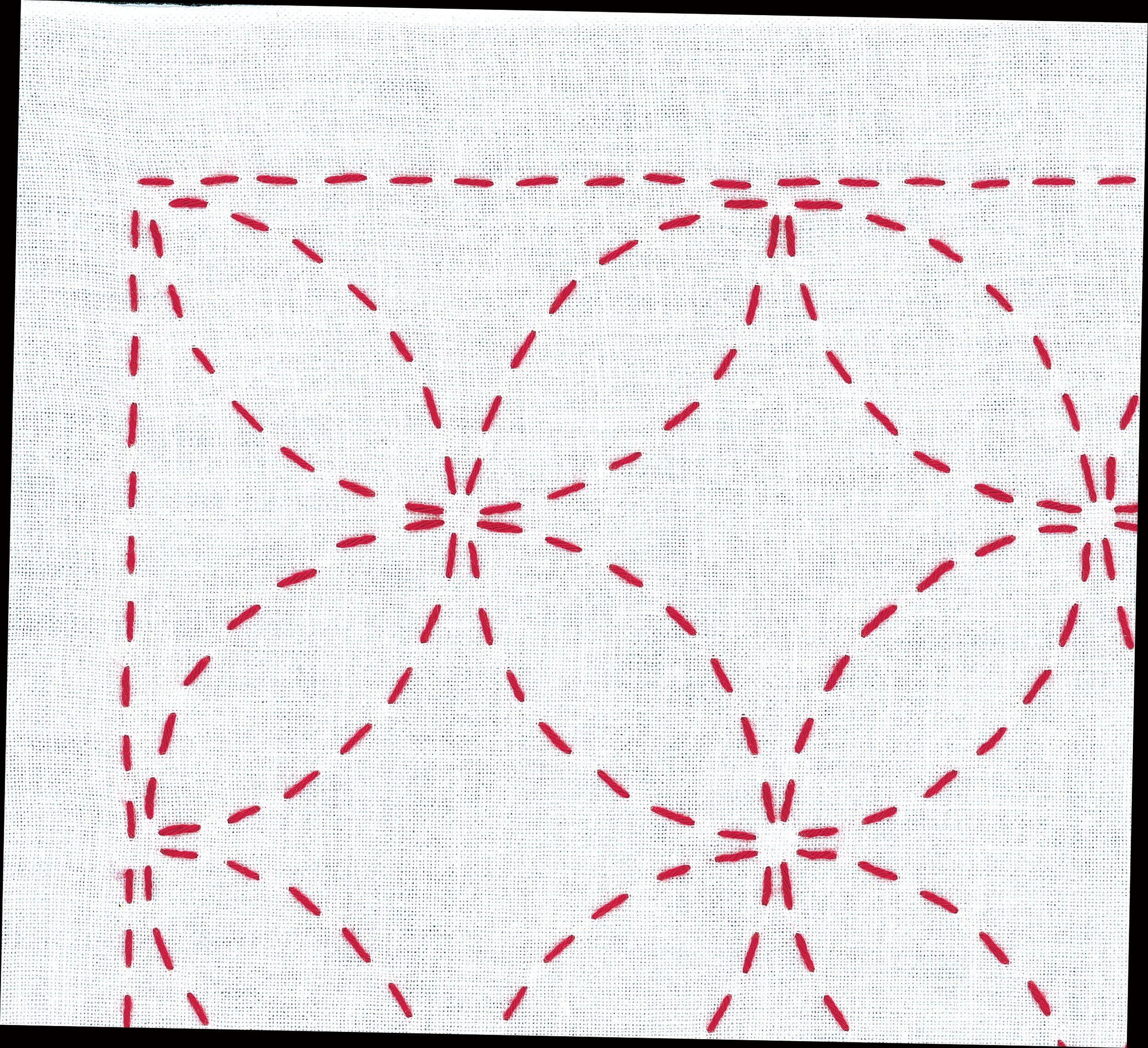 セット内容:刺し子糸、図案プリント済み晒木綿(白)、刺し子針(特大)長さ48mm、カラー説明書