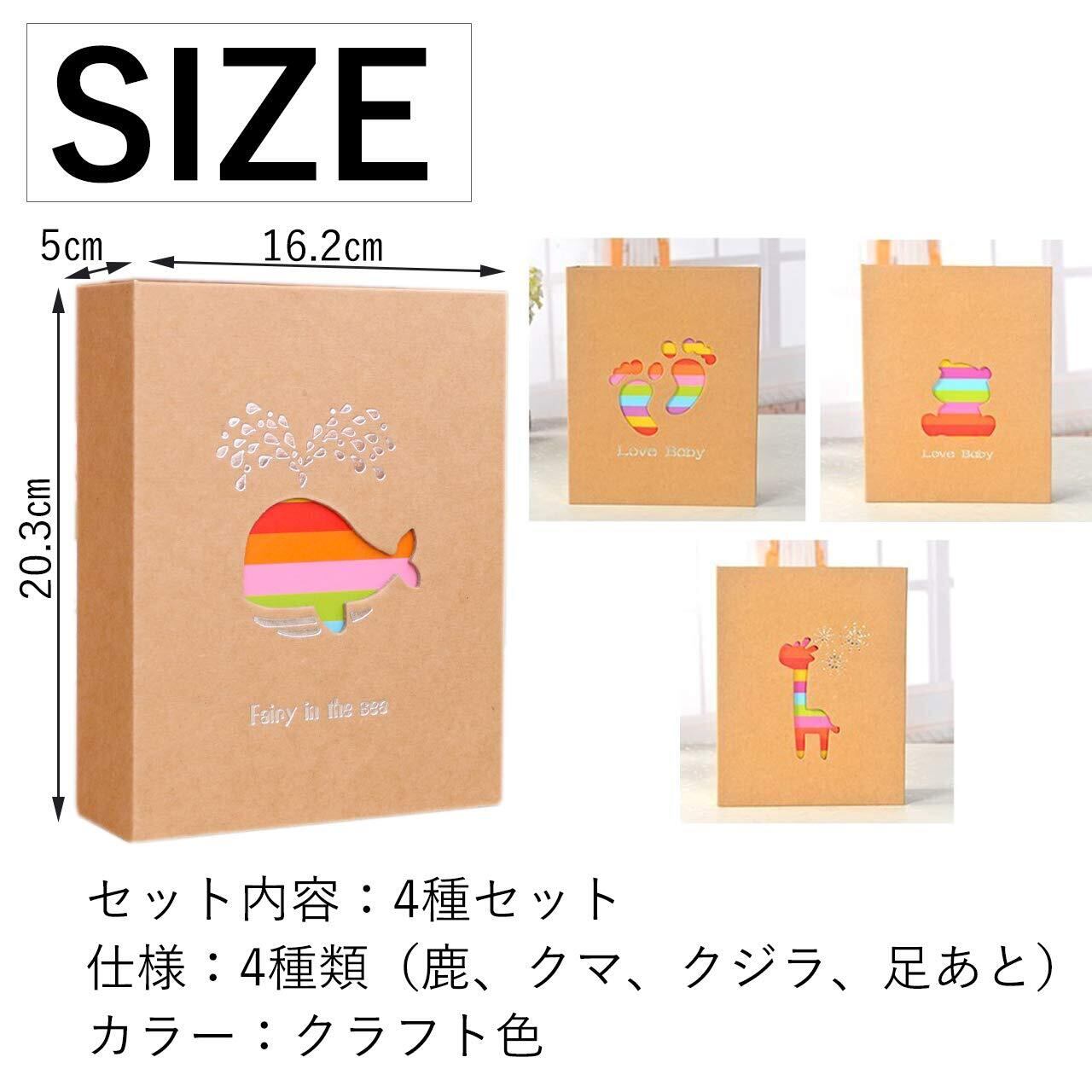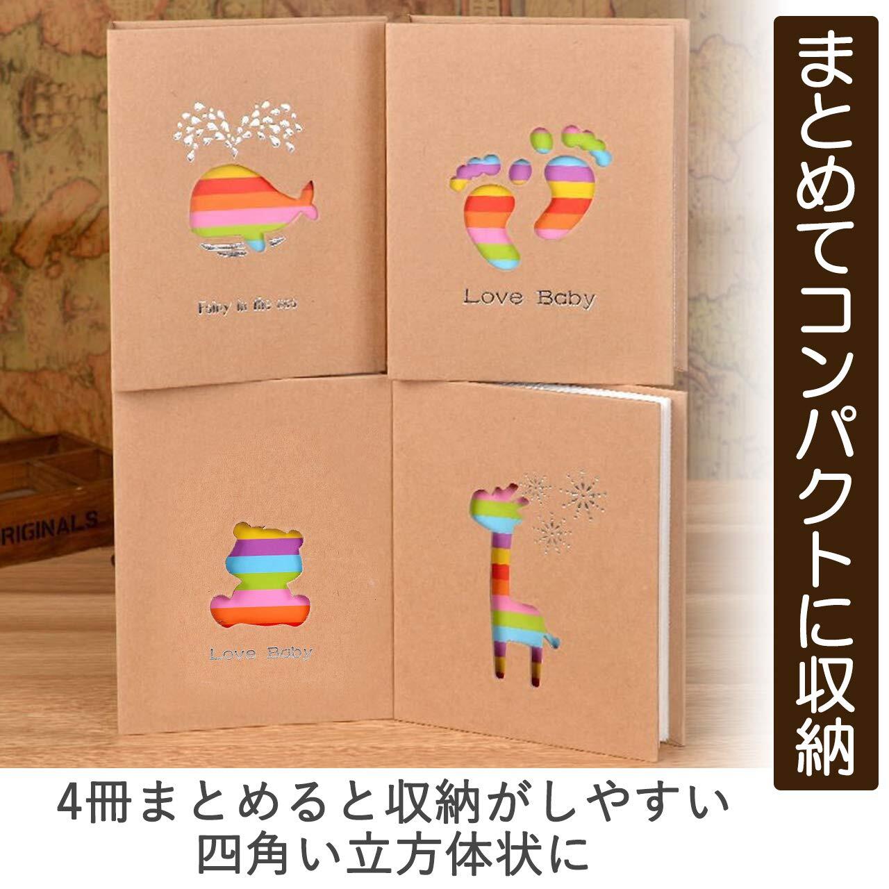 デザインがかわいくお子様の成長記録にピッタリ:表紙がかわいいイラスト型に切り抜かれ、裏紙にはレインボーデザインがあり、イラストの形に重なるように設計されています。アルバムごとに収納する写真を分ければいつ頃の写真かわかりやすくなることでしょう。