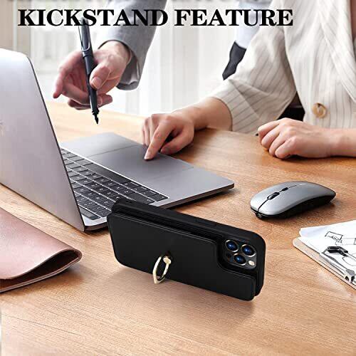 【J.DL直営店】iPhone 13Pro Max ケース 財布型 iPhone13proMax手帳型 ケース おしゃれ 13proMaxケース iphone13proMax case カード収納 レザーケース [スキミング防止] アイフォン13 プロ Max ケース 背面カード 360°回転リング スタンド機能 手触りが良い 女性用 人気 上質 ブラック