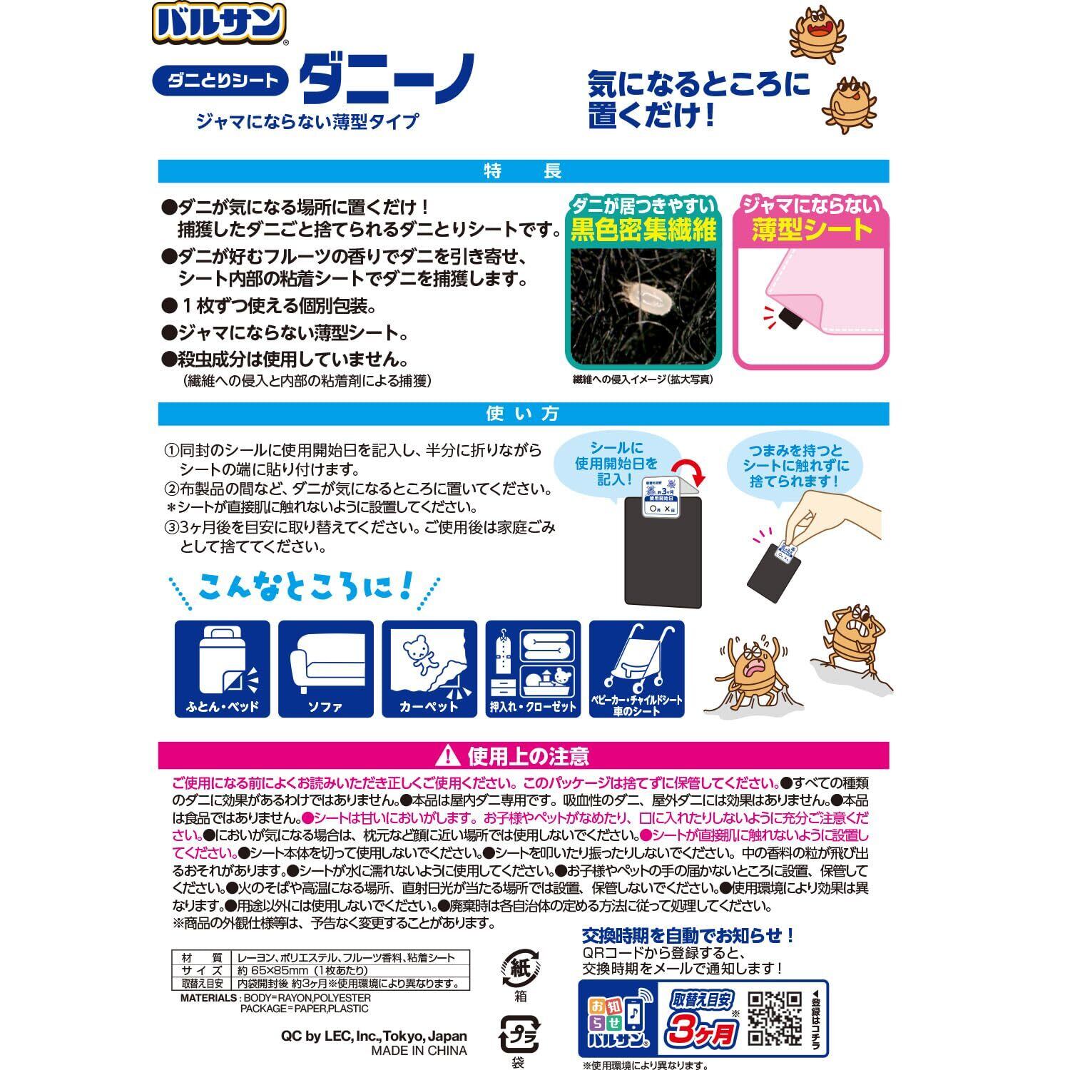 レック(LEC) バルサン ダニ捕りシート ダニーノ (12枚入) 捕獲したダニごと捨てる H00391