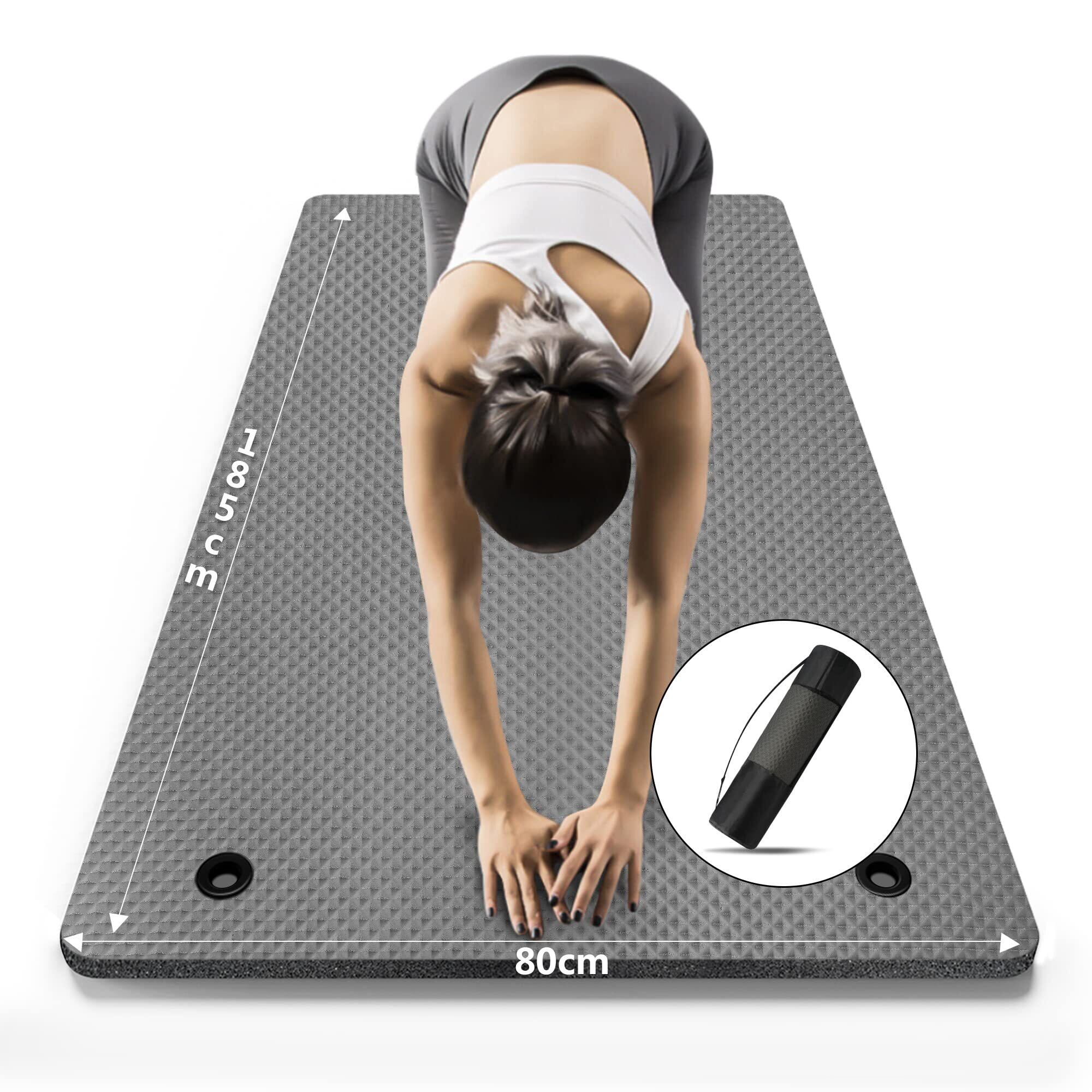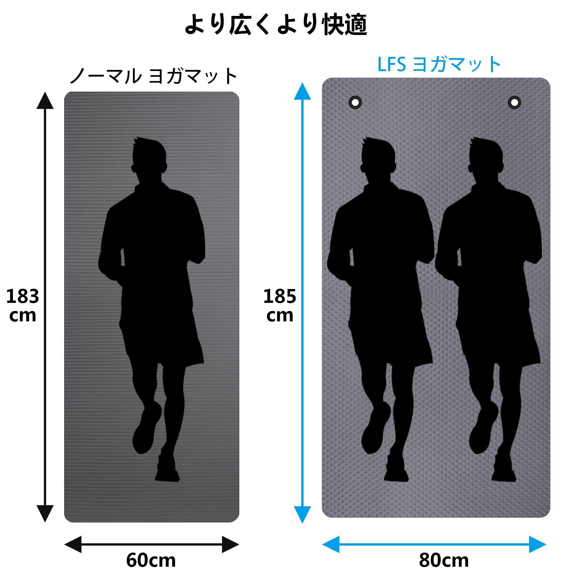 LFS ヨガマット 185*80mm 幅広 厚さ10mm トレーニングマット エクササイズマット ヨガ ピラティスマット 防音マット 高密度 ニトリルゴム 滑り止め 収納ケース付き(グレー)