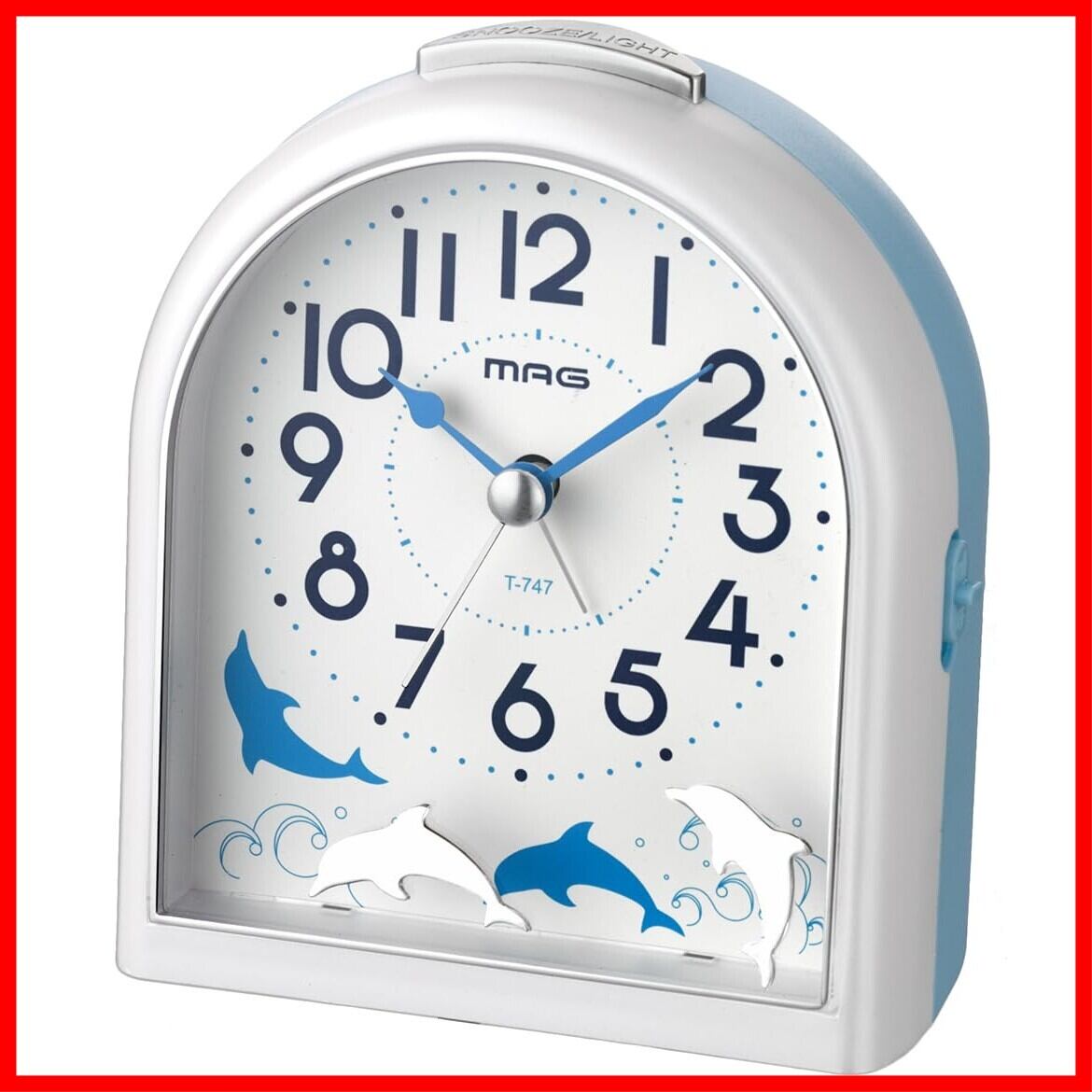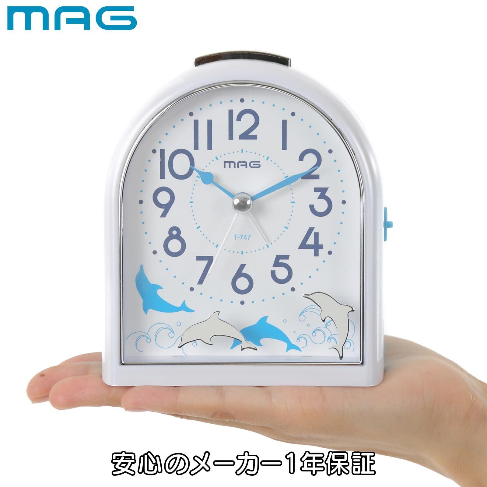 MAG(マグ) 目覚まし時計 置き時計 アナログ イルカ 動物 かわいい 子供 静音 連続秒針 電子音 アラーム スヌーズ ライト ホワイト ミグレイト T-747 WH-Z ノア精密