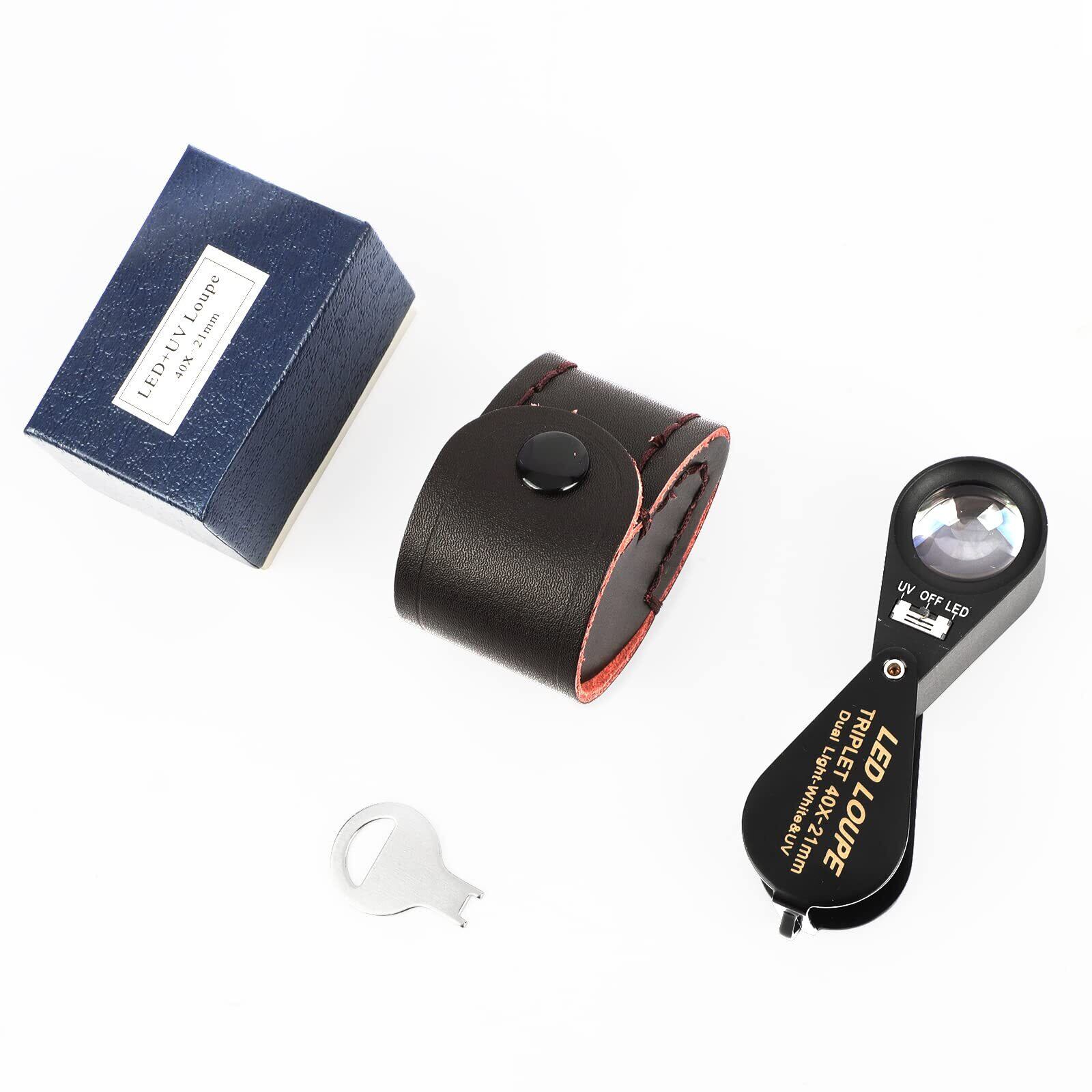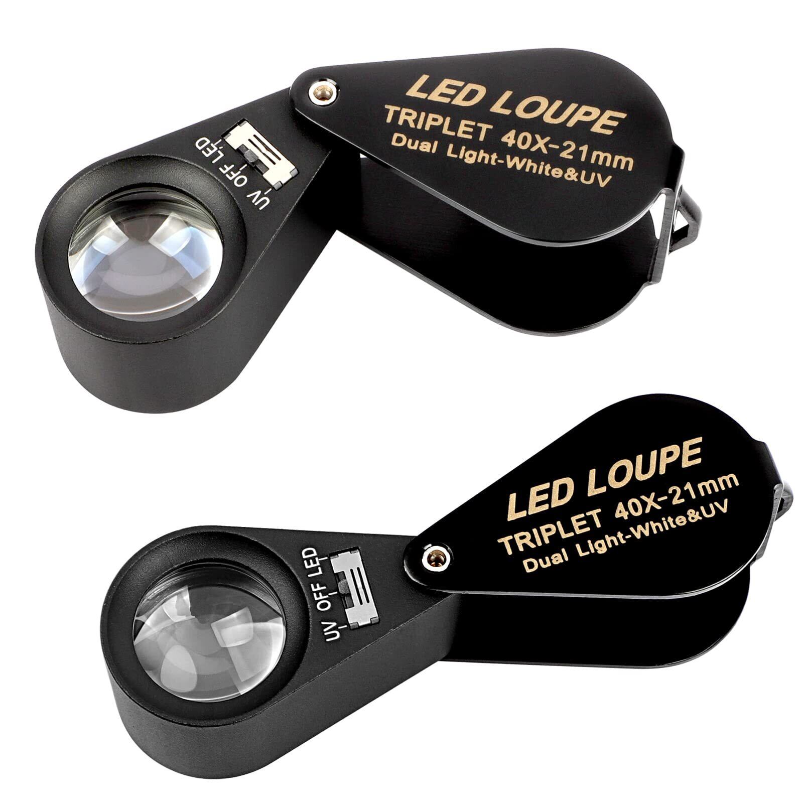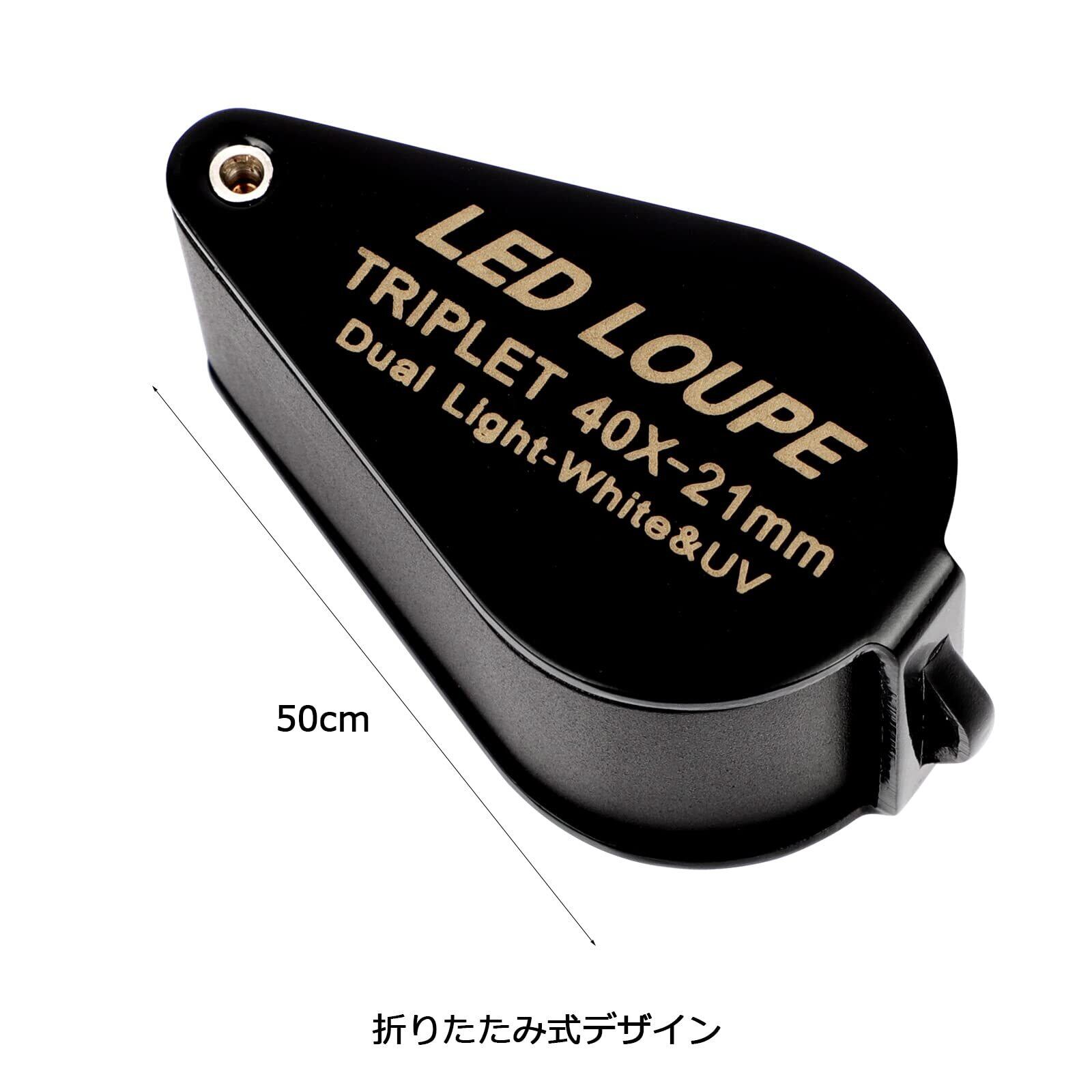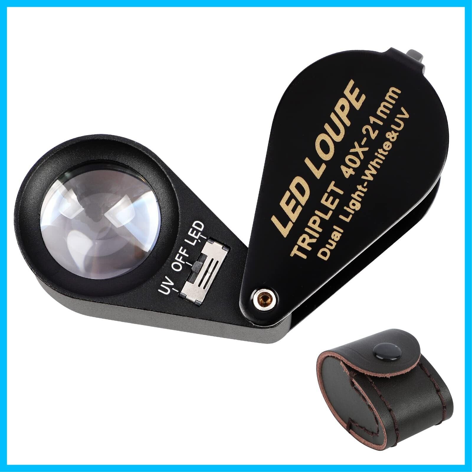 WOVTE拡大鏡 ルーペ40倍 携帯ルーペ ジュエリールーペ 宝石鑑定用 ダイヤモンドルーペ 虫眼鏡 高倍率40倍 拡大鏡 折りたたみ式LEDとUVライト付きルーペ