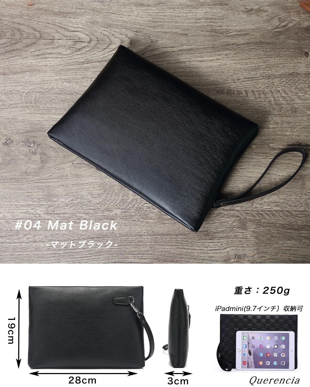 【ちょうどいいサイズ感】横28cm×縦19cm×マチ2.5~3cm、重さ:250g。長財布、服紗、タブレット(9.7インチまで)、文庫本など入る便利なサイズ感です。冠婚葬祭、パーティ、レジャー、バッグインバッグ、貴重品入れのポーチなどに使いやすいサイズ感です。付属:取り外せるストラップ付き ブランド:Querencia【バッグ内仕様】バッグ内には3つのポケットを備えていますので小物がカバンの中で迷子にならず収納できます。(ファスナーポケット×1、オープンポケット×2)また、内側の生地は「カサカサ」音のしない布生地を使用しておりストレスフリーです。