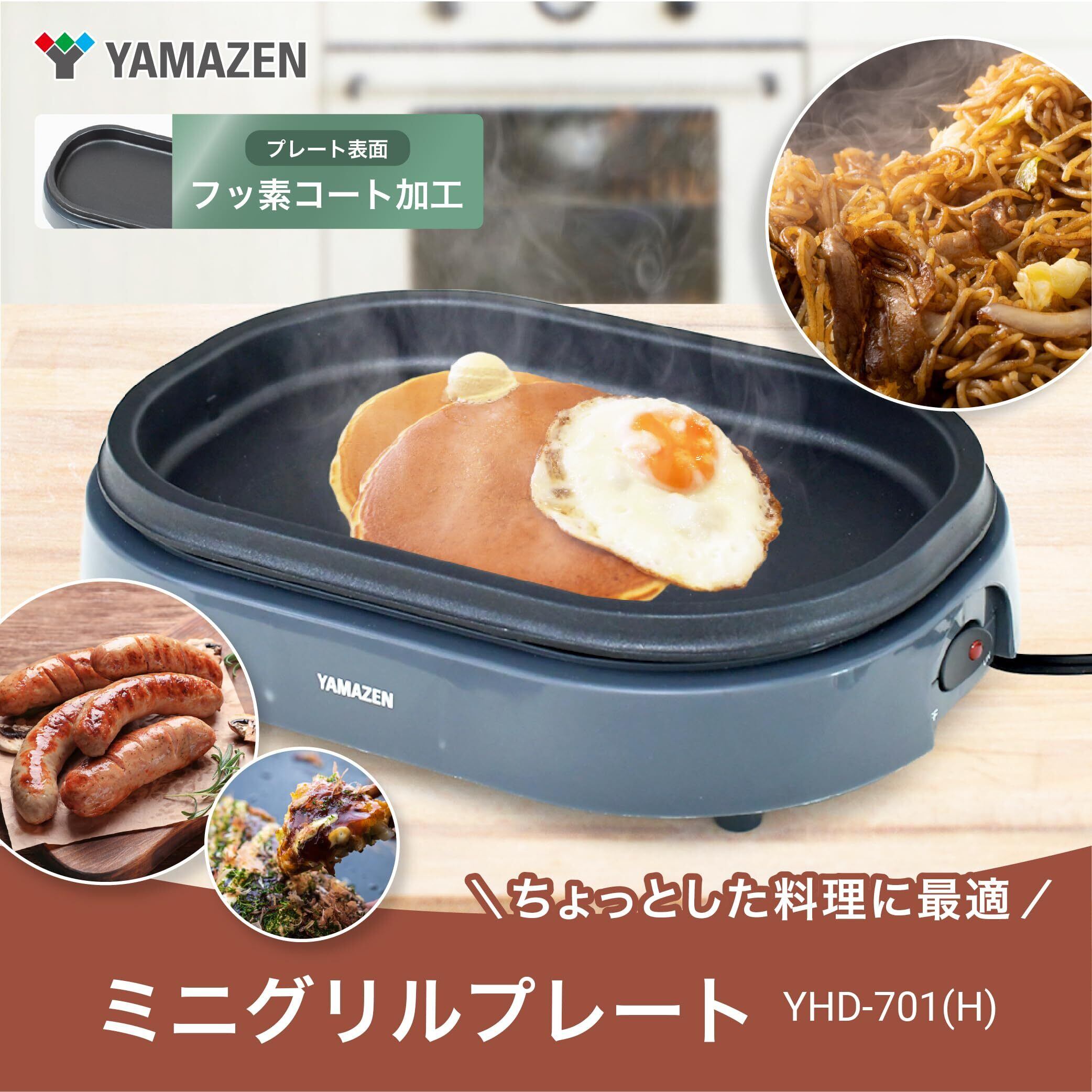 [山善] ホットプレート 一人用 一人暮らし ミニグリルプレート 平面プレート 表面フッ素加工 簡単操作 グレー YHD-701(H)