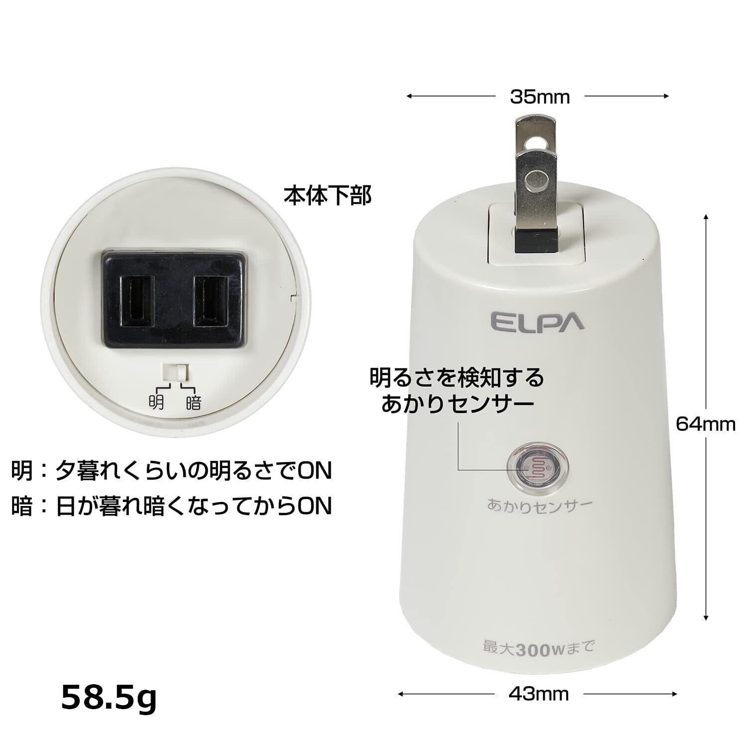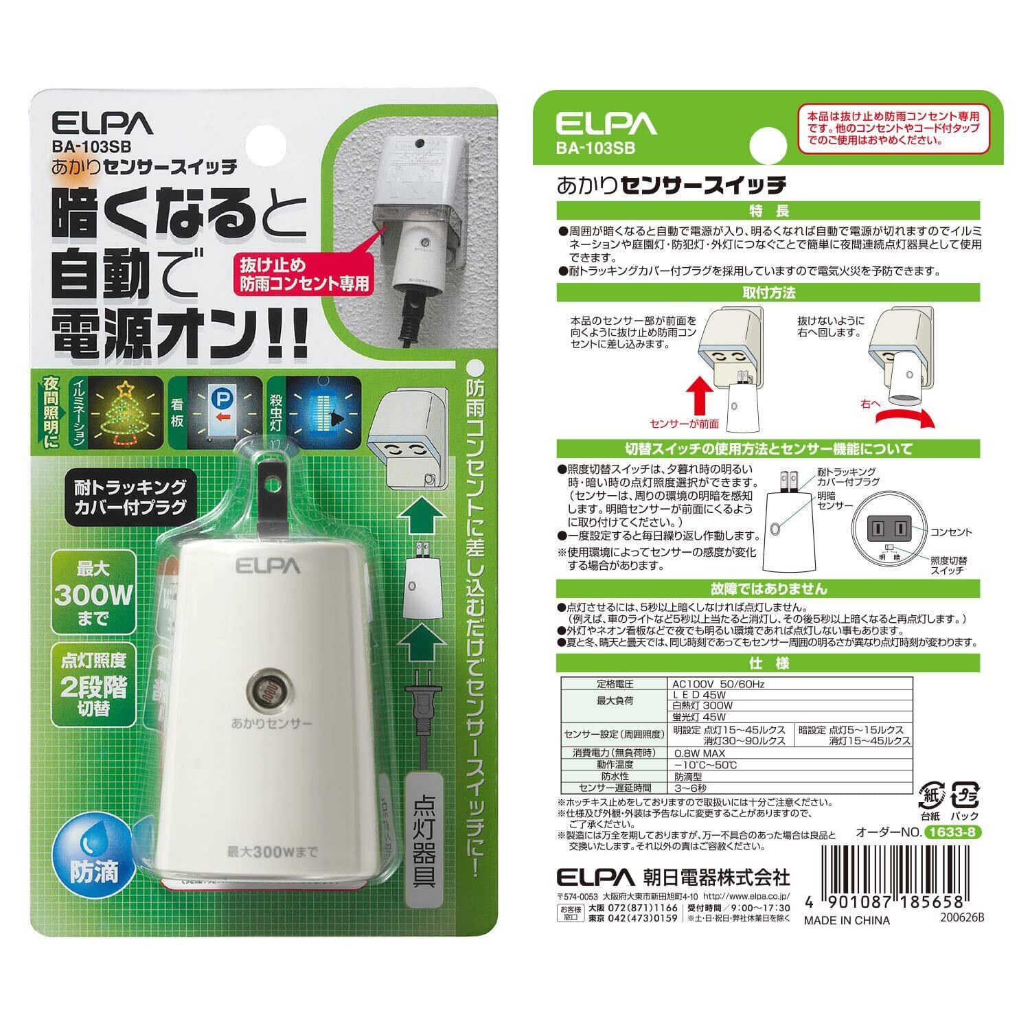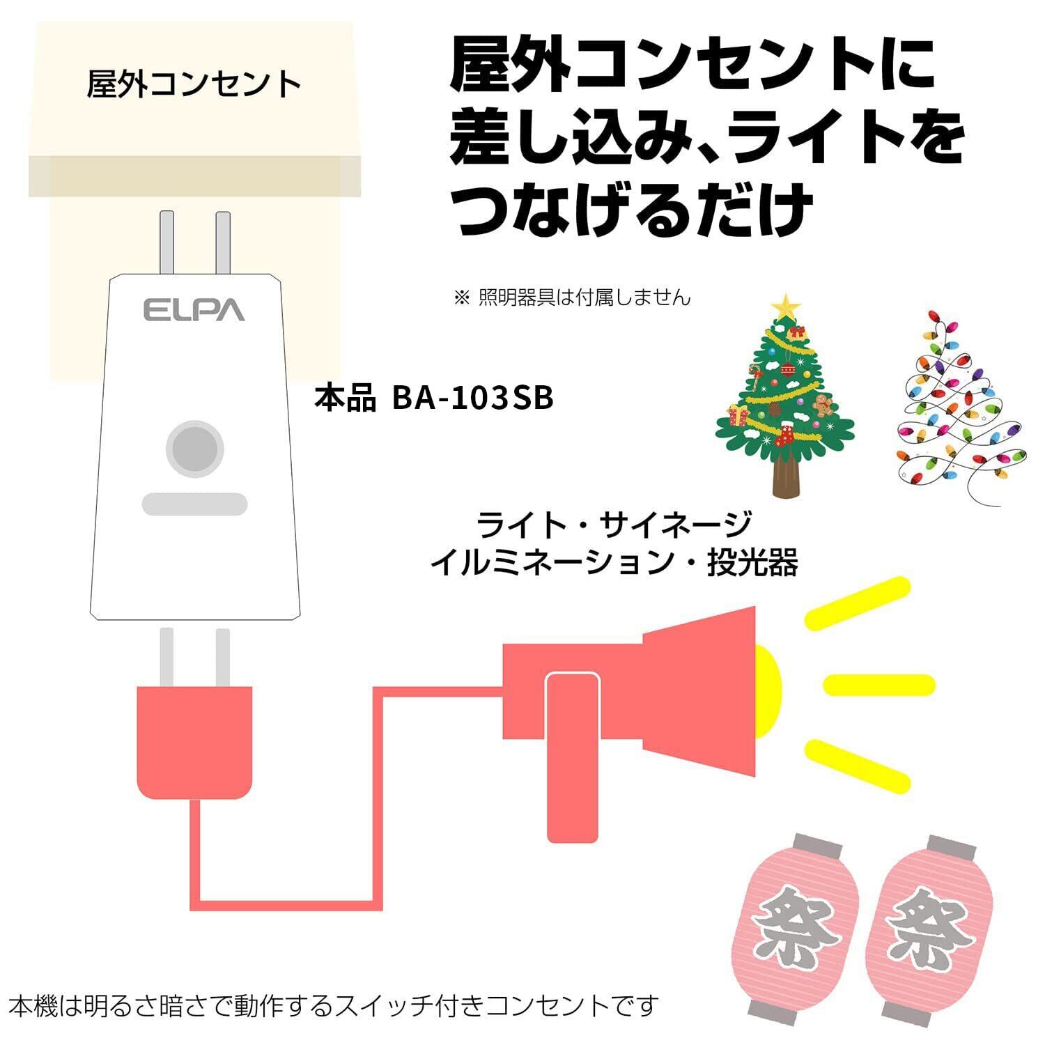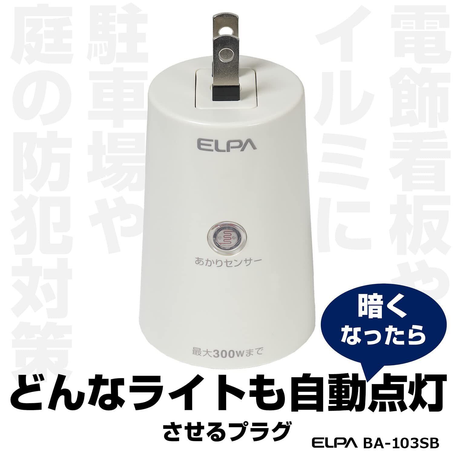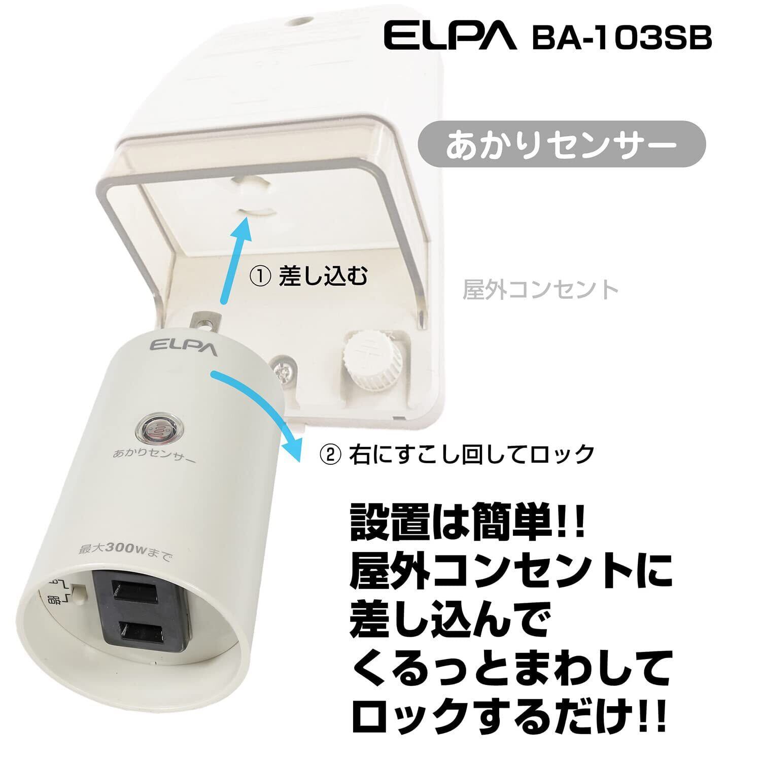 エルパ (ELPA) あかりセンサースイッチ 照明 トラッキング防止カバー AC100V 50/60Hz 防水 BA-103SB
