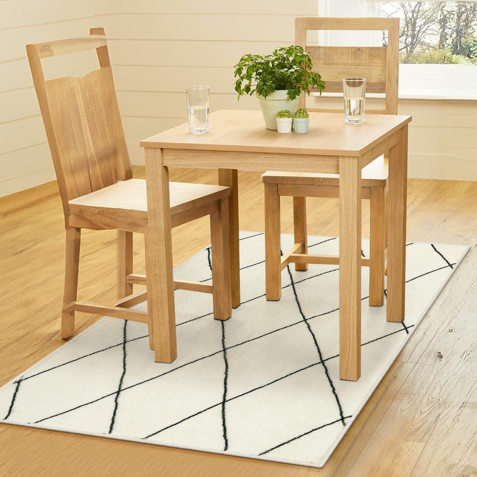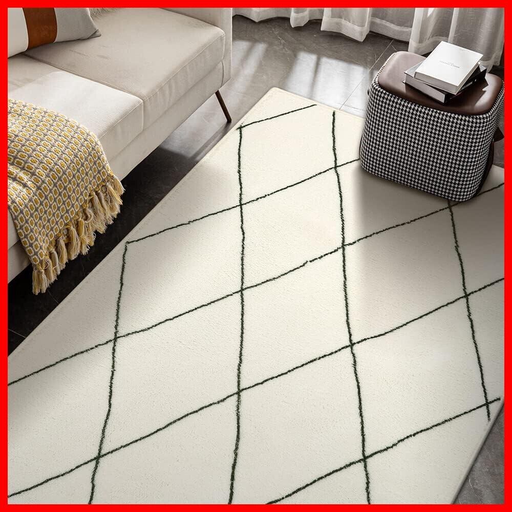 HAOCOO カーペット ラグ ラグマット 約1畳 北欧 アンティーク 幾何学柄 ふわふわ 滑り止め ホットカーペット対応 防音 洗濯可能 オールシーズン適用 リビング ダイニング (90х150cm,アイボリー)