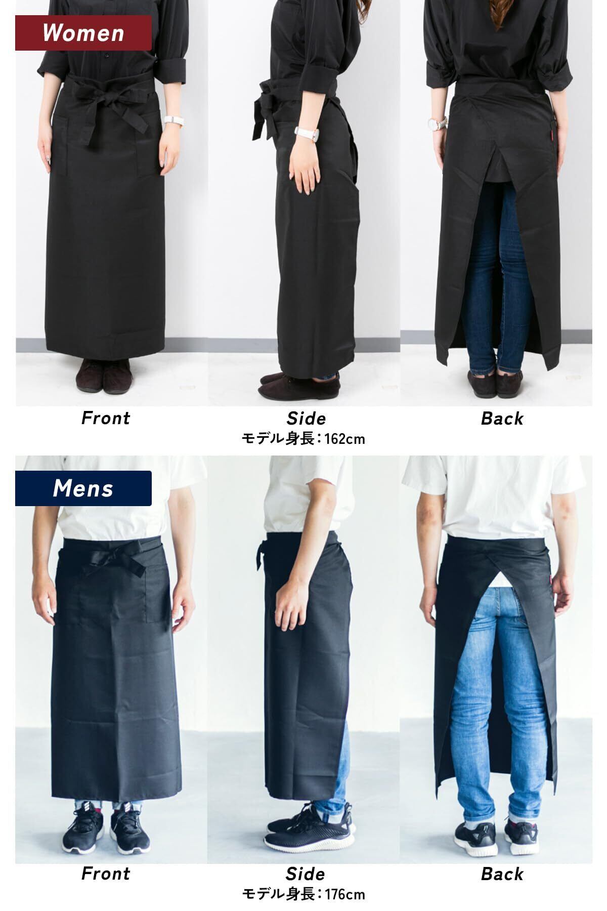 【美しく見えるシルエット】サロンエプロン特有の足元まですっぽり隠れる形状なので、着用した時のシルエットが美しく見えるように!