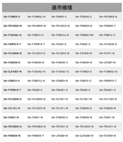 適用機種:NA-F10WE8-S/NA-F10WK8J-N/NA-F9WE8-S/NA-FD80H8-S/NA-FW100K8-N/NA-FW100K8-W/NA-FW108KS-W/NA-FW120V3-W/NA-FW80K8-W/NA-FW90K8-T/NA-F10AH8J-N/NA-F50B14-H/NA-F50B14J-N/NA-F50BE8-KW/NA-F60B14-C/NA-F60PB14-T/NA-F70PB14-T/NA-F8AE8-S/NA-F9AE8-S/NA-FA100H8-N/NA-FA100H8-W/NA-FA120V3-N/NA-FA120V3-W