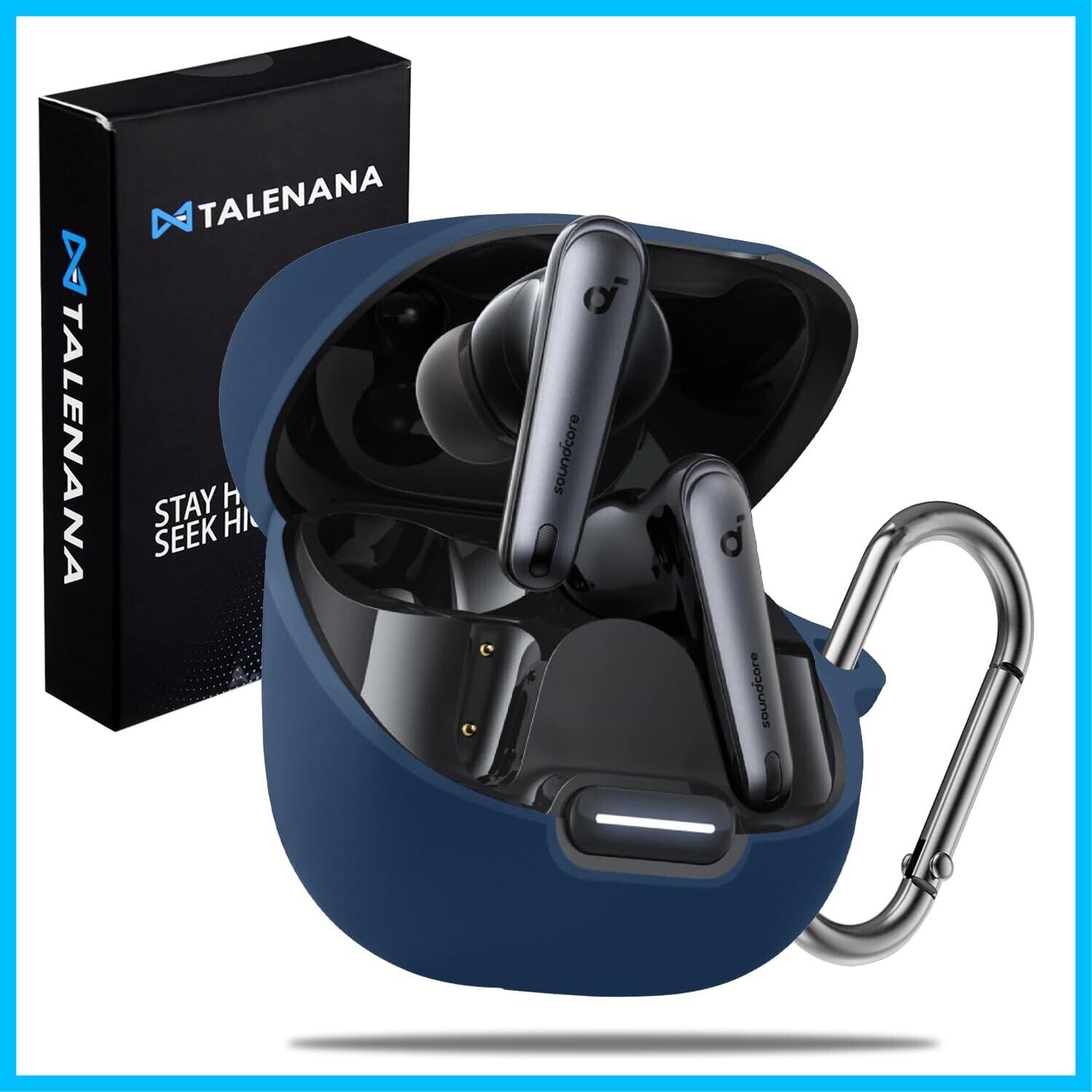 TALENANA For Anker Soundcore liberty 4 ncケースカバー Anker Soundcore liberty 4 nc 用カバー シリコン製 全面保護 落下防止 かわいい キズ防止 耐衝撃 装着充電可能 軽量小型 カラビナ付き Anker Soundcore liberty 4 ncアクセサリー(ブルー)
