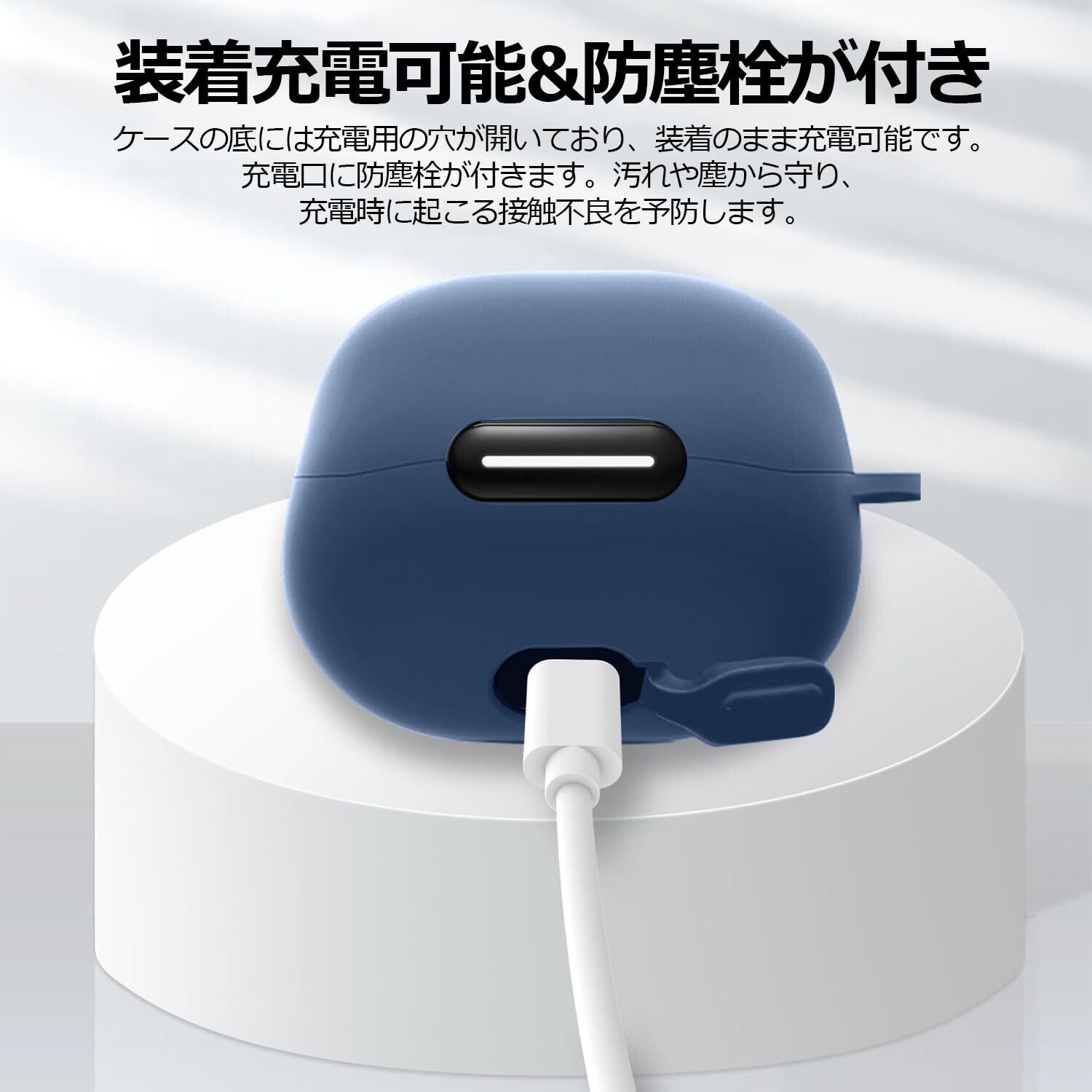 「充電らくらく&防塵栓が付き」ケースに充電用の穴が空いているので、手間なくケーブルを挿し込めて、装着したままの充電が可能です。さらに、Soundcore liberty 4 ncの充電口に防塵栓が付きます。汚れや塵から守り、充電時に起こる接触不良を予防します。