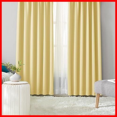 Hansleep カーテン 1級遮光 4枚組 イェロー 黄色 幅100cm丈135cm UVカット 断熱 防寒 防音 省エネ 厚手 無地 おしゃれ カーテンセット 洗える 寝室 リビング用 (ドレープカーテン2枚・レースカーテン2枚)