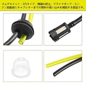 【商品の機能】ゴムグロメット:2穴タイプ、横漏れ防止。プライマポンプ:エンジン始動前にキャブレターまでの燃料の吸い込みを補助する部品です。