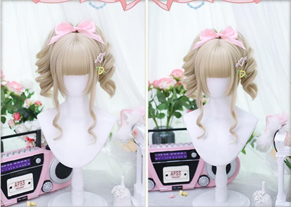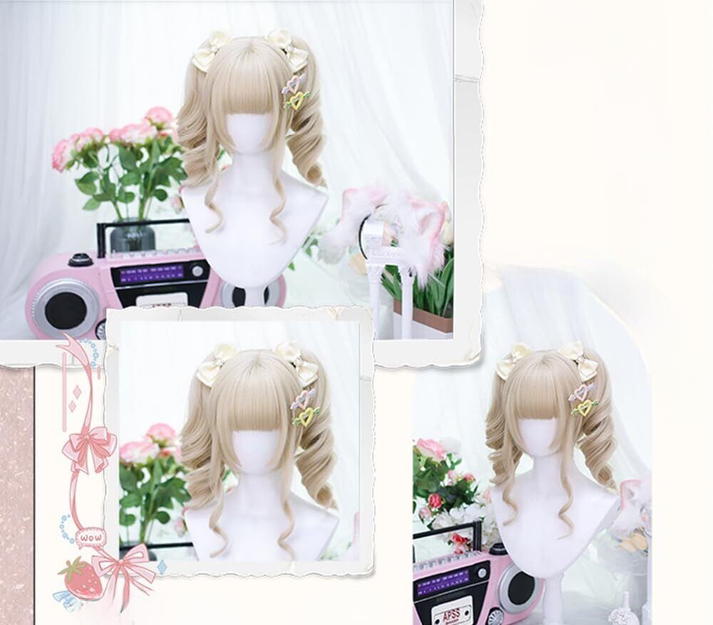 姫カット ゆるふわ カール 巻き髪 自然 ロリータウィッグ 原宿風 ツインテールネット付き 耐熱 ゆめかわいい コスプレ lolita風 日常 ウィッグ かつら wig (ベージュ)